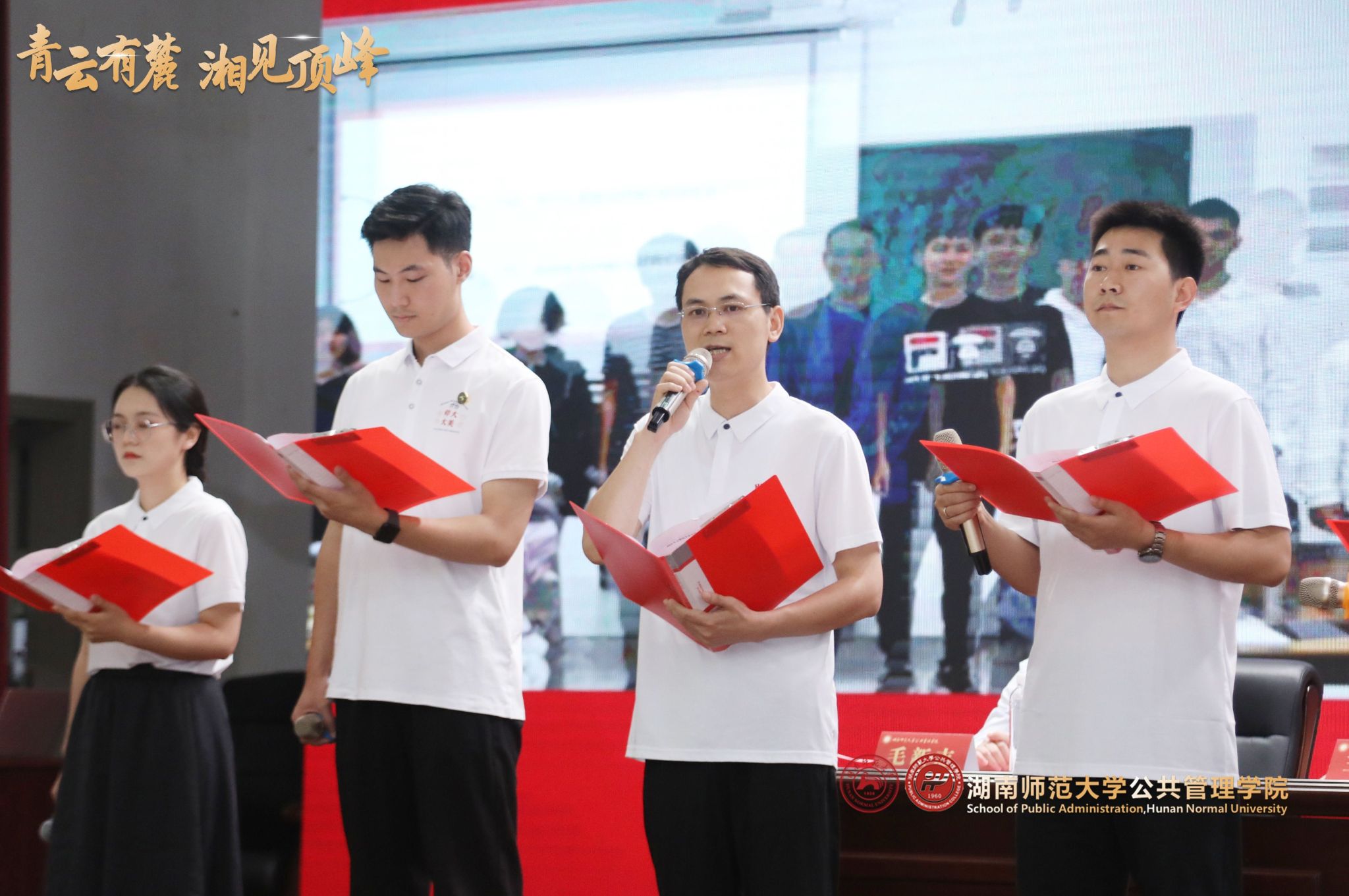 研究生代表彭理强、段潇涌、陈莹曦、杨洁、宋雪玲、朱武桥五位同学代表各学位点全体毕业博士和硕士研究生发言,表达他们对学院和导师们悉心栽培的深深谢意以及对全体毕业生研究生们的美好祝福,深情回忆在湖师大、在公管院的青葱岁月与成长收获。