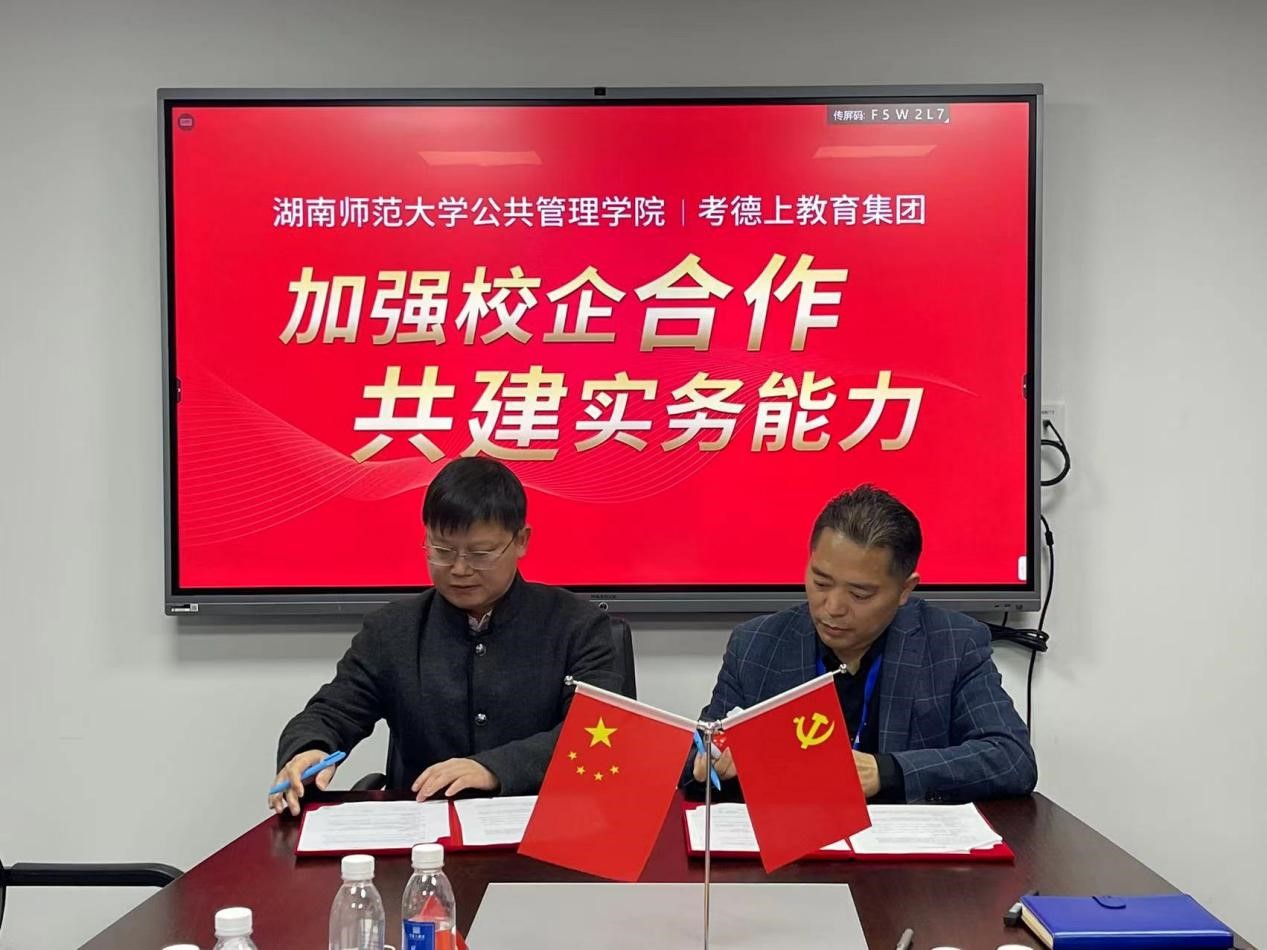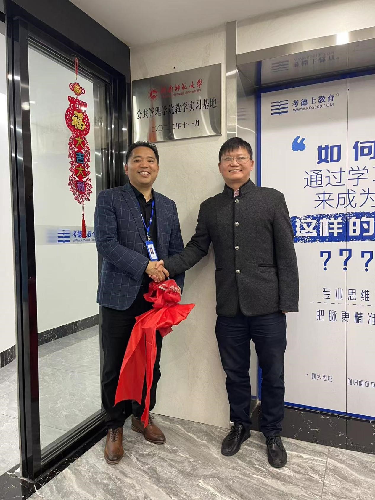 毛新志与田亚东共同为“公共管理学院教学实习基地”揭牌,标志着湖南师范大学公共管理学院和考德上教育成功搭建教学教研实习基地,深化了校企双向交流。该基地的成功建立将为我院青年学子提供优质的实习实训平台,引导学生将专业理论知识切实运用到实习实践中去,成长为高素质应用型人才。