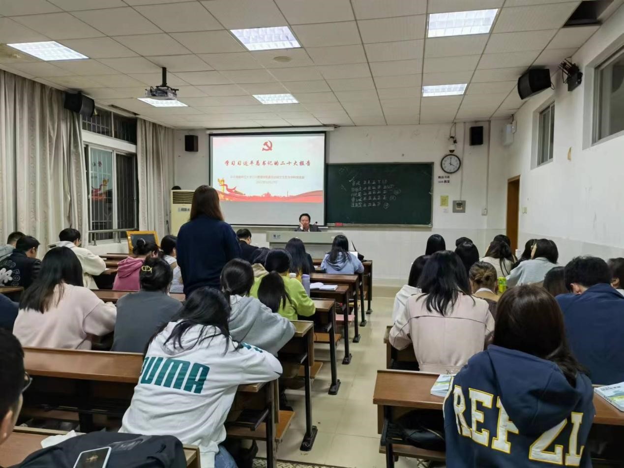 尹哲副教授将政治理论学习和学术写作相结合,为全体学生解读党的二十大报告。他强调,青年学子学习贯彻党的二十大精神,在学术研究中要凸显使命担当,坚定信仰信念信心,要在各方面更加深刻领会“两个确立”的决定性意义。