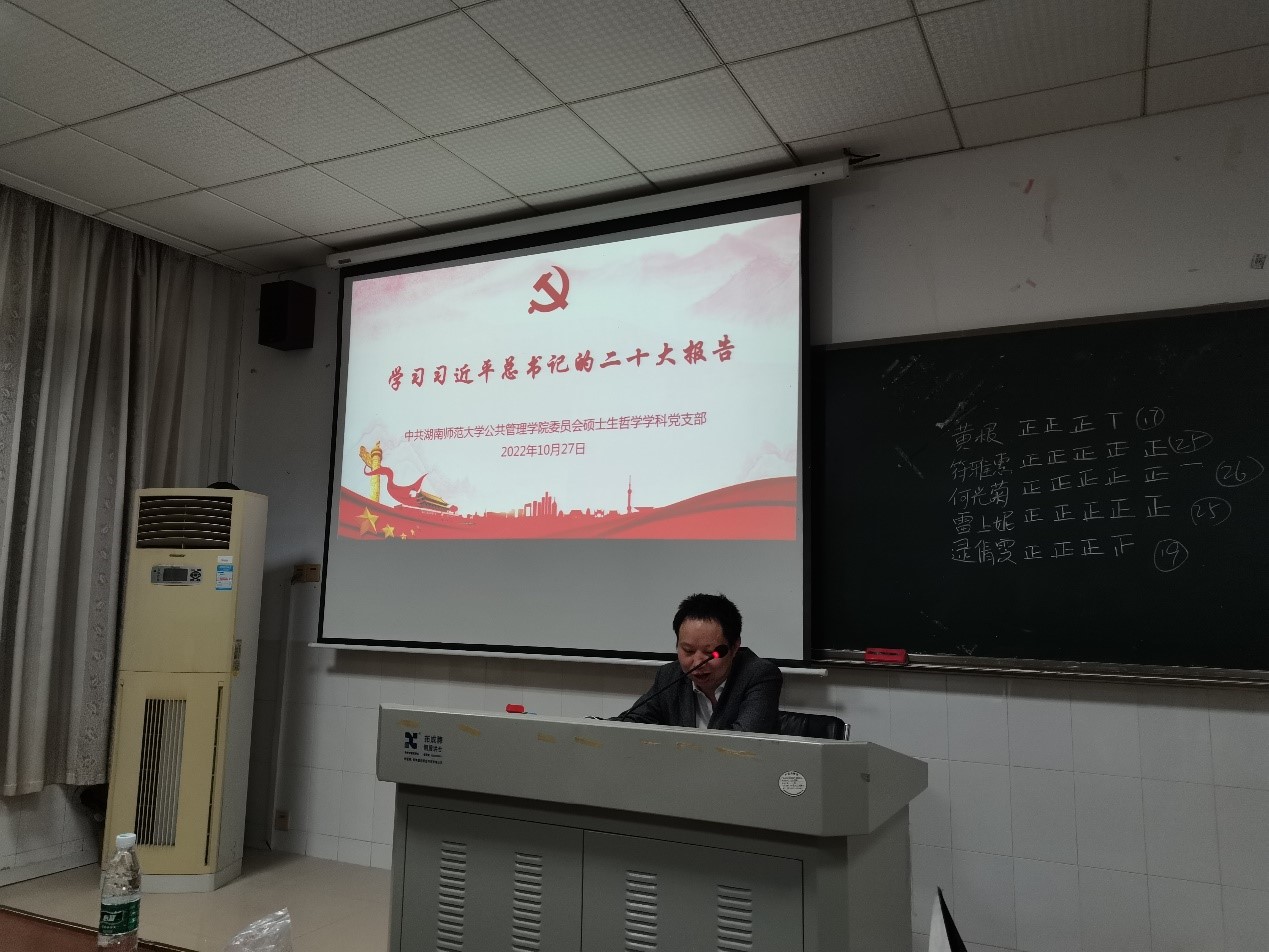 10月27日晚上7点,硕士生哲学学科党支部围绕学习党的二十大精神举办“学习习近平总书记的二十大报告”主题党课。本次党课由硕士生哲学学科党支部第一书记尹哲副教授主讲,支部全体党员、发展对象和部分入党积极分子参加。