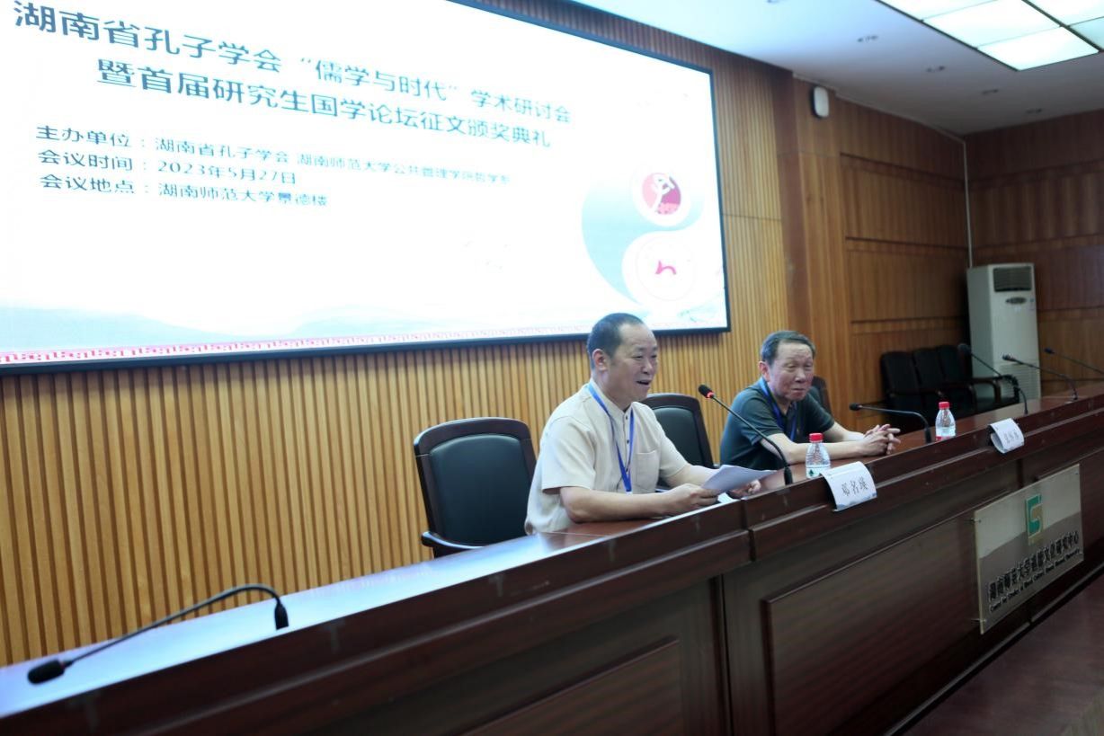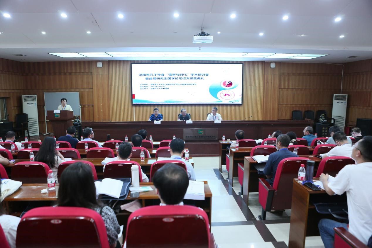 5月27日,湖南省孔子学会“儒学与时代”学术研讨会暨首届研究生国学论坛征文颁奖典礼在湖南师范大学景德楼成功举办,来自省内外的70多位专家、学人及会员代表们参会。本次会议由湖南省孔子学会和湖南师范大学公共管理学院哲学系共同主办。