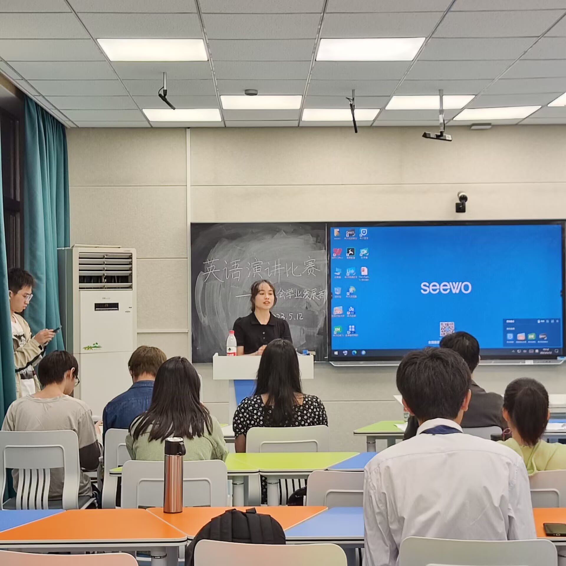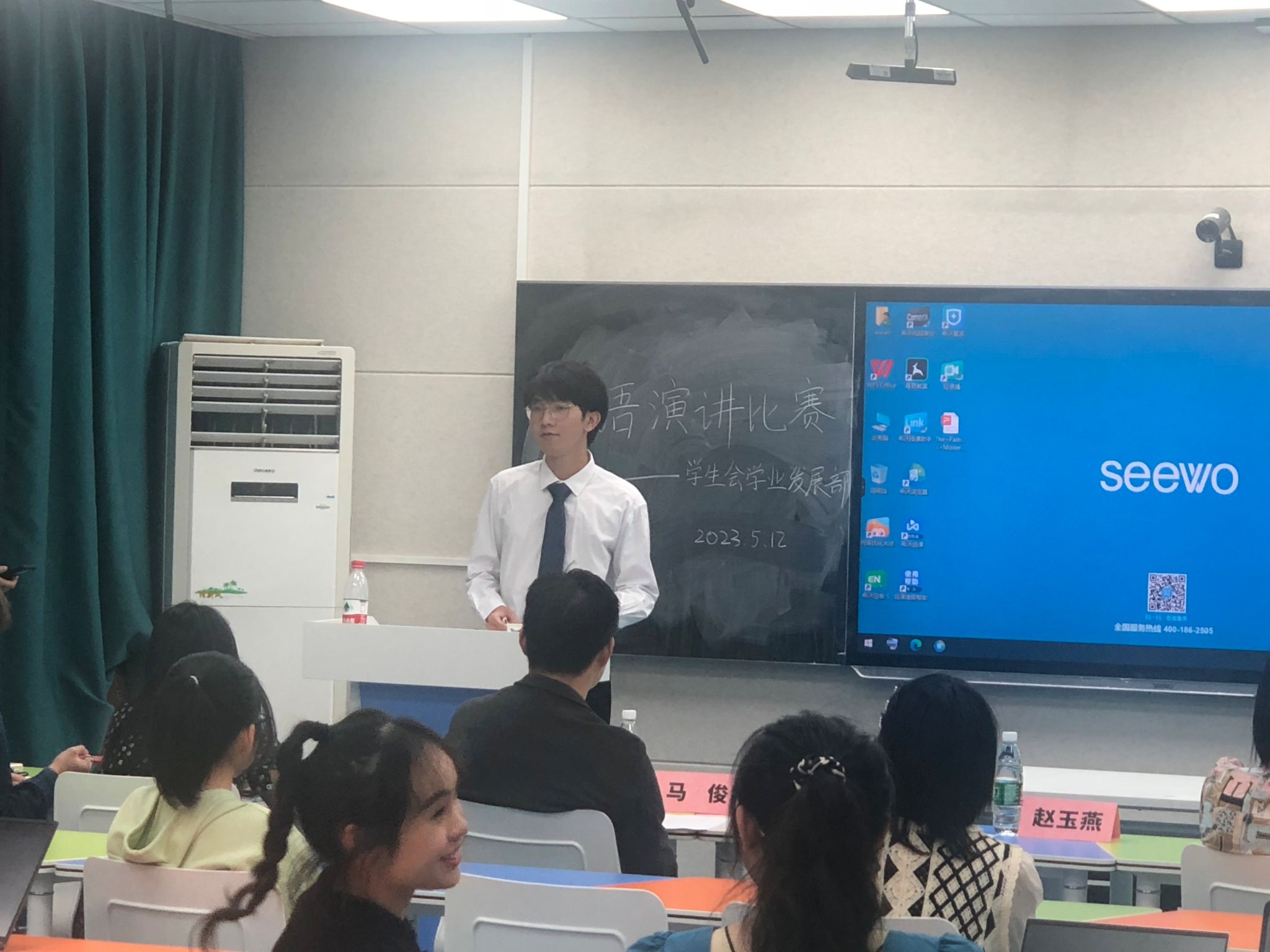 (通讯员 雷心怡 杨粞蜓)初夏时节,万木峥嵘,绿意盎然。为积极推动湖南师范大学学生英语教学改革、提高大学生实用英语能力,湖南师范大学举办第二十九届大学生英语演讲比赛。为推选两名同学参加校级英语演讲比赛,由学生会学业发展部主办的公共管理学院英语演讲比赛于5月12日19点在景德楼中栋209教室顺利举行。为保证评审的专业性和比赛结果的公平性,此次比赛特意邀请到湖南师范大学公共管理学院社会学系赵玉燕、行政管理系颜琳、哲学系马俊等三位老师担任评委出席。