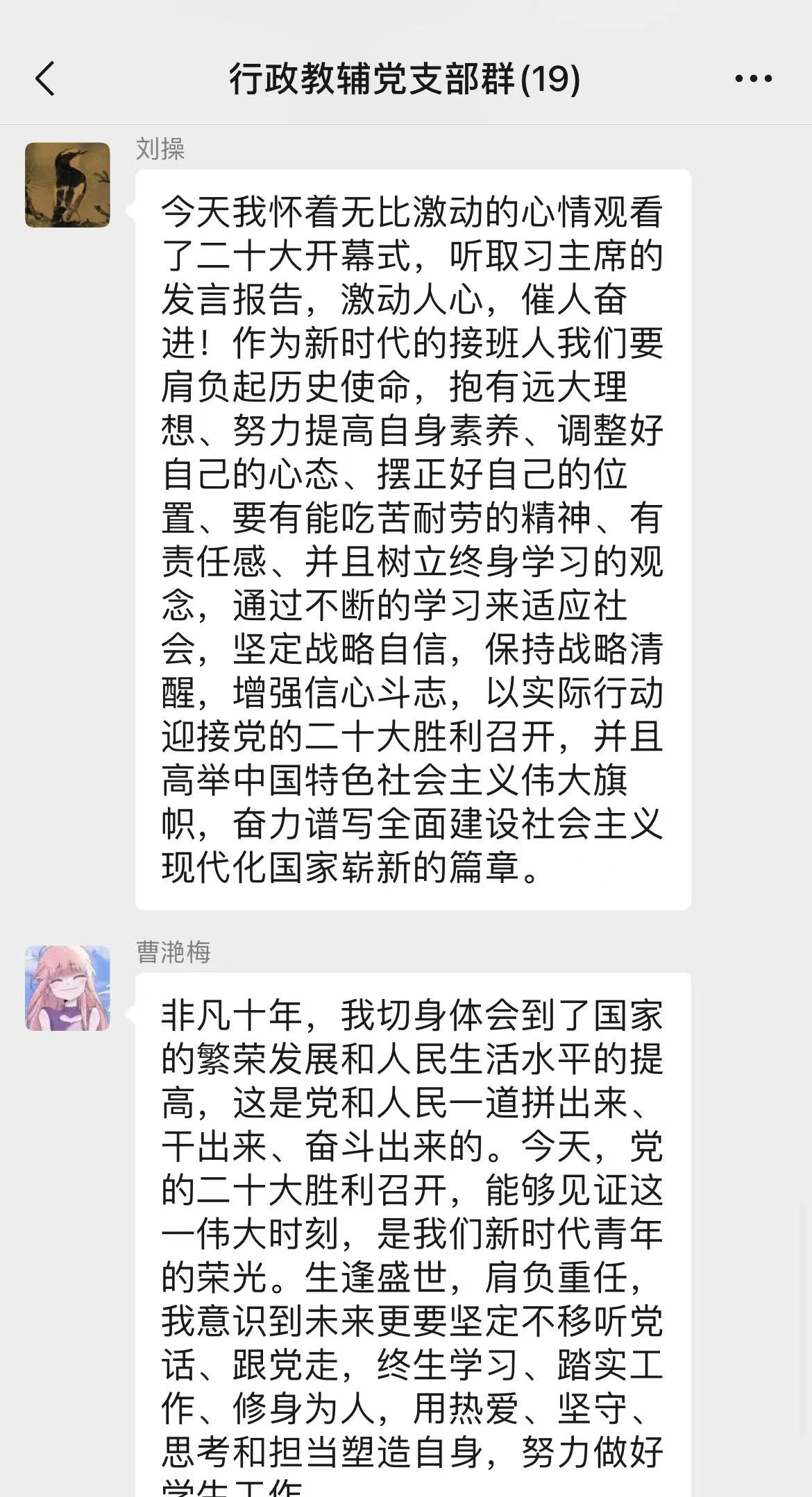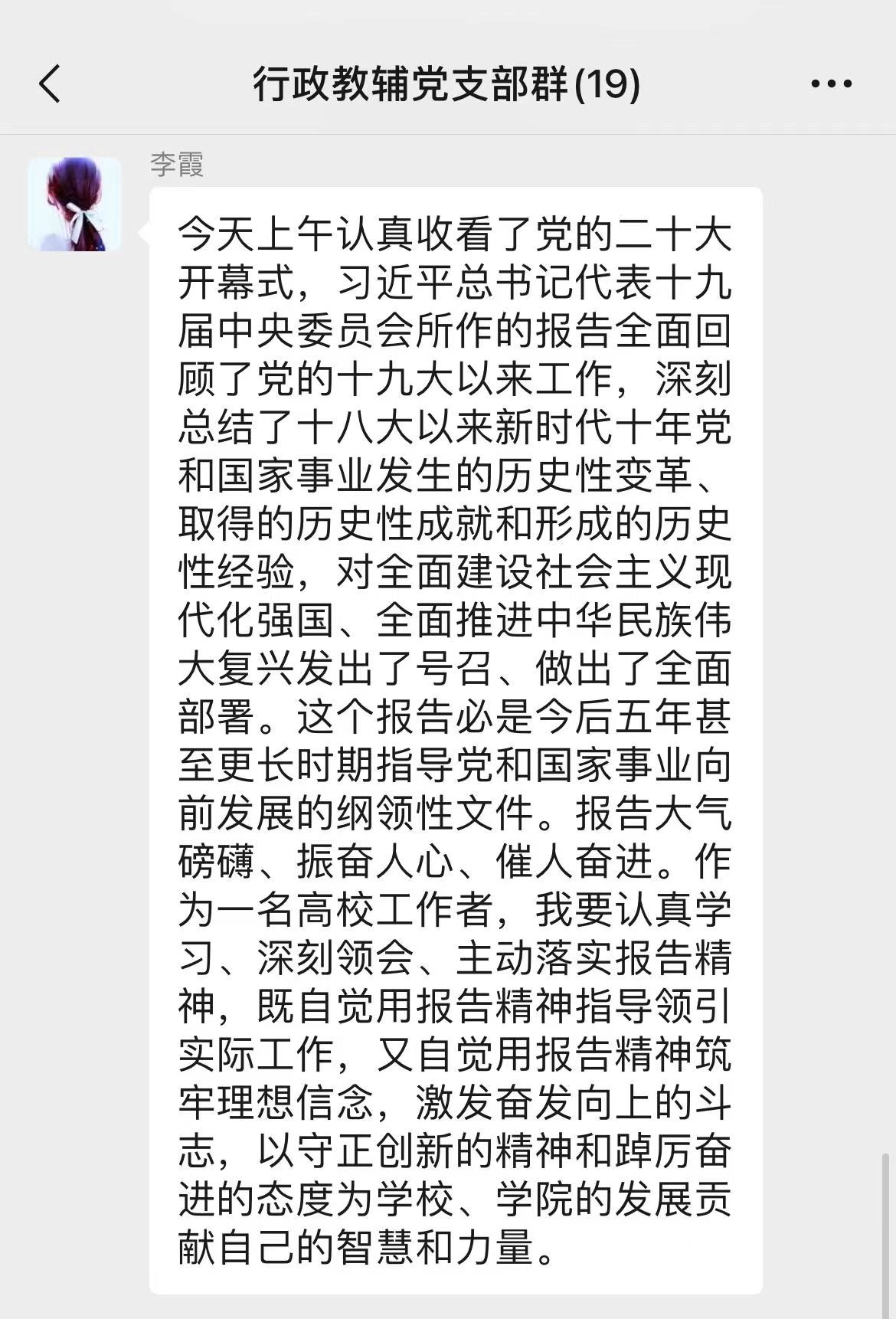 行政教辅党支部党员热议党的二十大报告心得体会: