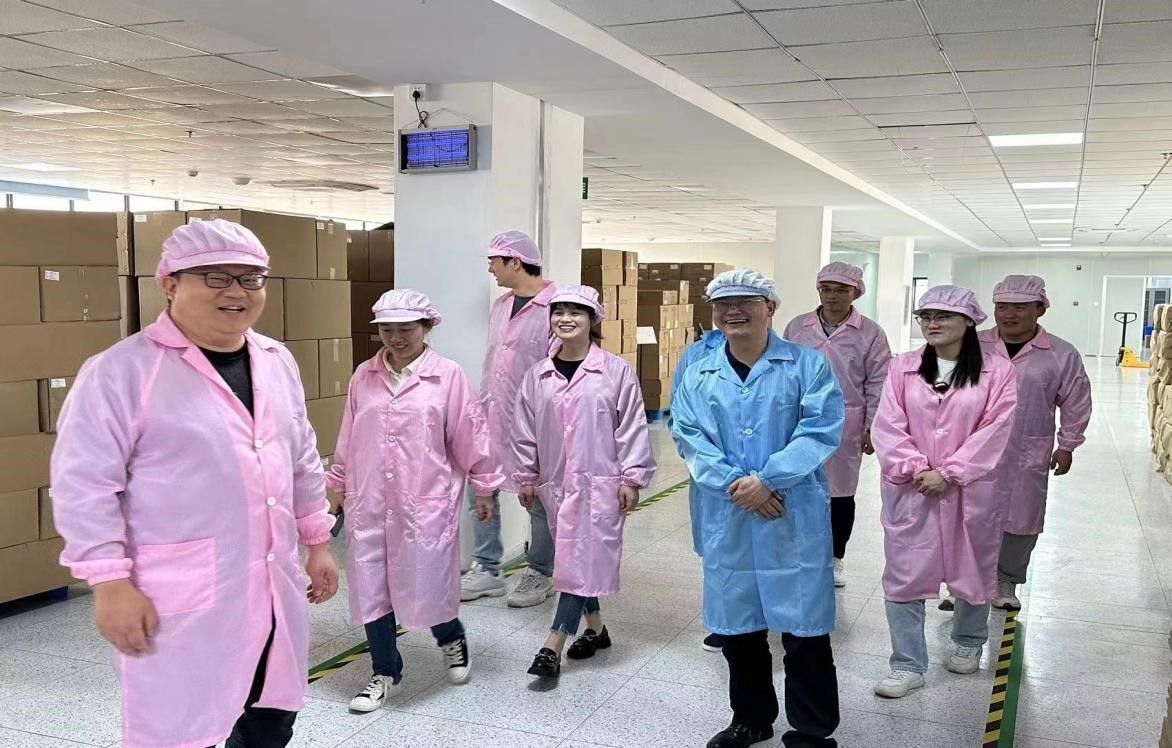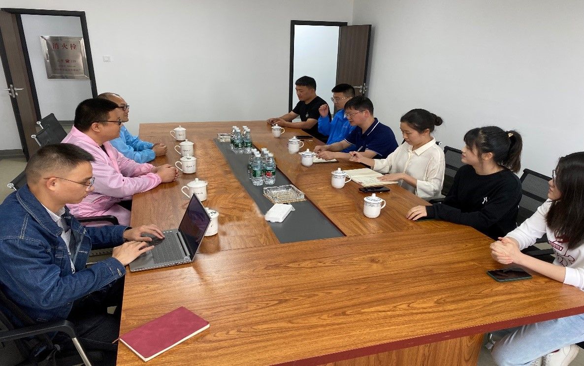 毛新志院长一行参观了企业现有生产线、研发中心、仓储中心,向文林总经理等人陪同参观并对公司目前的发展和产品开发等方面进行了介绍。随后在公司会议室召开了座谈会。