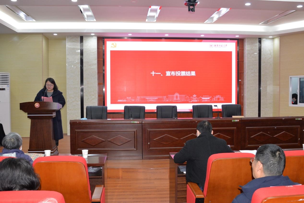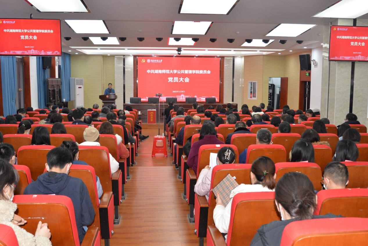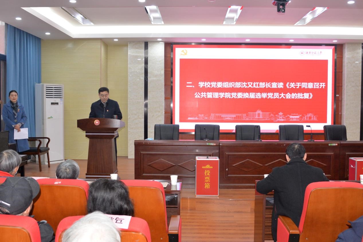 大会在庄严的国歌声中拉开帷幕。湖南师范大学党委委员、党委组织部沈又红部长宣读《关于同意召开公共管理学院党委换届选举党员大会》的批复;大会听取并审议余望成同志代表上一届学院党委所作的工作报告和专职组织员林峻同志所作的学院党费收支情况报告。