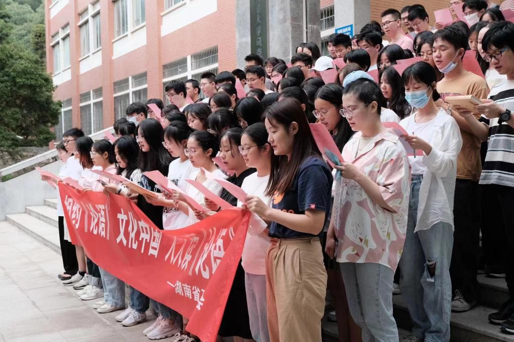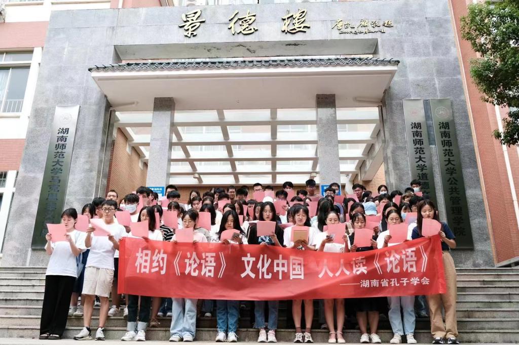 9月28日上午,为了纪念孔子诞辰二千五百七十三周年,致敬伟大的至圣先师,致敬不朽的人文经典,积极传承与弘扬中华优秀传统文化,提升大学生的文化自信与国学涵养,湖南省孔子学会组织哲学系2019、2020、2021级本科生在景德楼门前诵读《论语·学而》第一、四、六、十四章。“为天地立心,为生民立命,为往圣继绝学,为万世开太平。”希望学子们学究天人、思贯古今、德业兼修,能够积极发扬仁爱精神,深厚培植家国情怀,奋力承担文化使命。