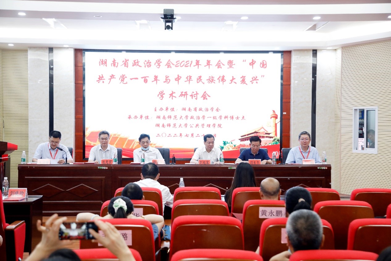 7月23日上午,湖南省政治学会2021年年会(因疫情推迟补开)暨“中国共产党一百年与中华民族伟大复兴”学术研讨会在湖南师范大学景德楼召开。本次会议由湖南省政治学会主办,湖南师范大学公共管理学院与政治学一级学科博士点承办,来自中南大学、湖南大学、湖南师范大学、中共湖南省委党校、长沙理工大学、省机关事务局、各地州市委党校等多家机构的近百名湖南省政治学界代表受邀参加了本次会议。