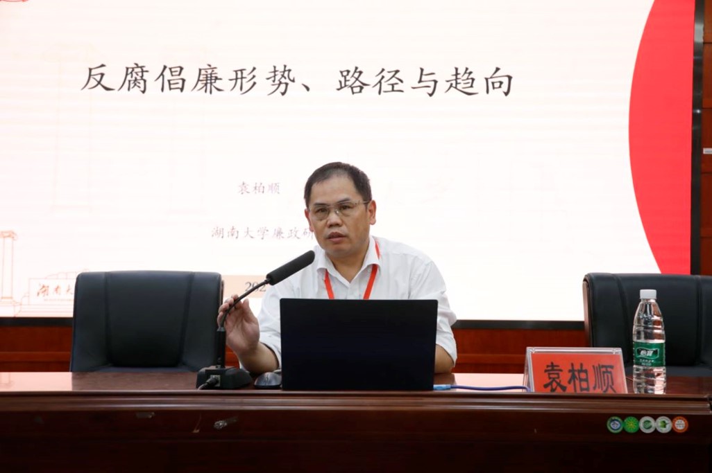 在学术研讨环节,湖南大学马克思主义学院副院长、博士生导师袁柏顺教授以“反腐倡廉形势、路径与趋势”为题做了学术报告,从中央对于反腐形势的判断出发,阐述了廉洁政治到廉洁社会、廉洁单元的建设路径和战略与对策。湖南师范大学“潇湘学者”特聘教授、博士生导师刘晓玲教授以“‘两个确立、两个维护’的实践”进行主题发言,阐述了二者的理论逻辑,提出了实践中必须注意的几种倾向。湖南师范大学博士生导师李风华教授以“百年奋斗经验中人民话语的变迁”为主题进行了发言,从马克思主义经典论述的梳理中思考了人民话语的阶级内涵。中共湖南省委党校、湖南省团校校长、朱雄君副教授以“中国共产党的信仰”为主题进行了发言。中共株洲市委党校统战理论教研部主任邓文飞副教授总结“从北伐渌田大捷看中国共产党建立统一战线的历史经验”。湖南师范大学博士生王绪以“党的领导优势转化为政府治理效能的‘组织-技术’互动机制”为主题进行了发言。