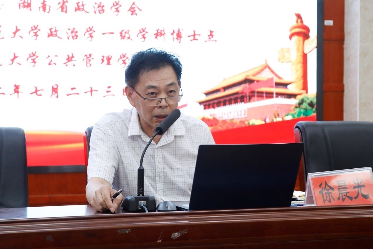 最后,湖南师范大学“潇湘学者”讲座教授、省政治学会会长徐晨光教授做了总结发言,他高度评价了各位参会学者在科研领域做出的工作,指出当前政治学研究中存在的不足,同时展望了未来政治学研究的主题和深化的方向。他勉励参会代表,力争为学会的发展、政治学的发展及中华民族的伟大复兴尽自己的一份力量。