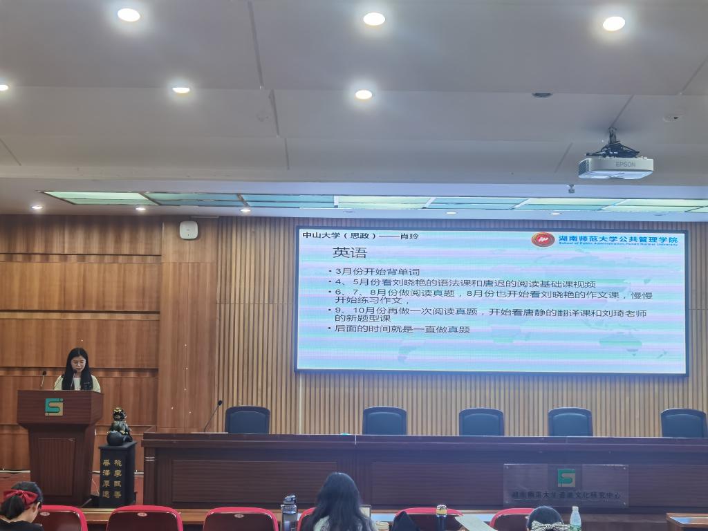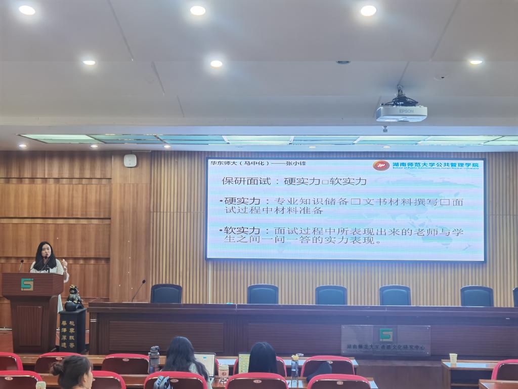 交流中,8位同学依次发言,就考研保研的经验做了分享。顾静雅就南京大学马克思主义学院的报考细节进行了介绍,晏航分享了华中师大学科思政的备考技巧,胡添锦介绍了择校的方法以及考研期间各种压力平衡的方法,覃彦婷重点介绍了湖南师大学科思政的备考注意事项,肖玲向学弟学妹介绍了考研时间安排,陈桢分享了报考本校的优势和劣势,邵逸斐就保研的类型和流程进行了简单的说明,张小锋结合自身的面试经历详细介绍了撰写文书和面试的技巧。