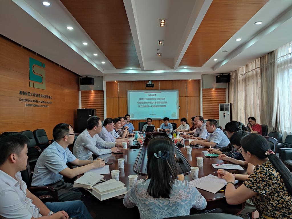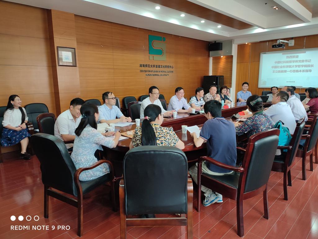 2021年6月4日,中国社科院哲学所党委书记、中国社会科学院大学哲学院院长王立胜教授和马彦涛老师一行莅临本系调研。当日下午在学院415会议室举行座谈会,公共管理学院院长、哲学学科负责人毛新志教授,道德文化研究院常务副院长、哲学系主任向玉乔教授,以及哲学系近20位教师出席本次会议。
