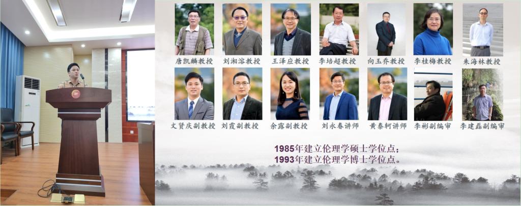 其次,马克思主义哲学教研室主任彭婷老师、中国哲学教研室主任肖平老师、外国哲学教研室主任张含老师、伦理学教研室文贤庆老师、科学技术哲学教研室主任李波老师、逻辑学教研室主任王淑庆老师、美学教研室主任张霖源老师、宗教学教研室主任尹哲老师,依次对各教研室的师资等情况作了简要而全面的介绍。