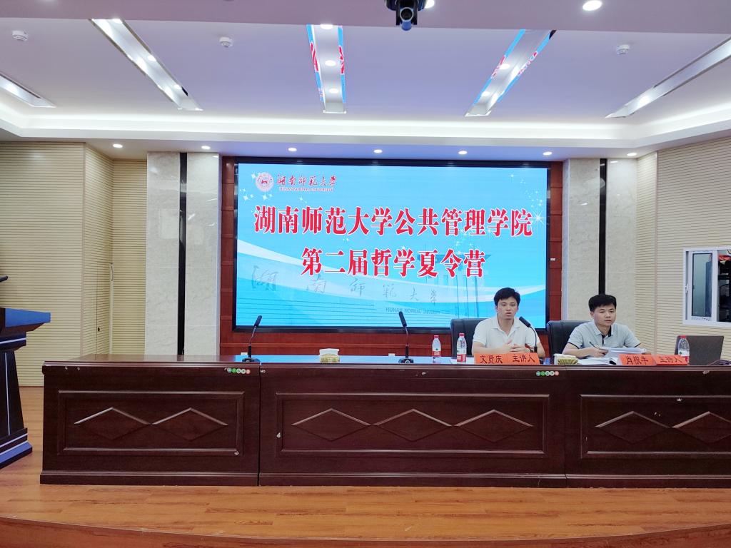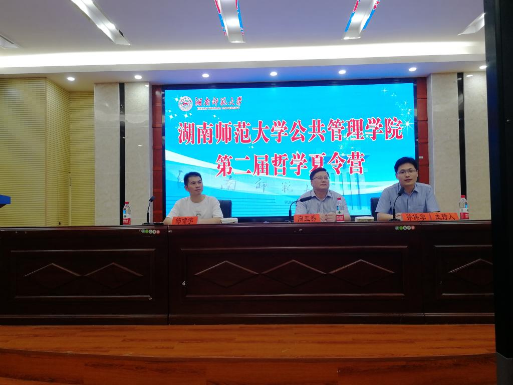 7月16-20日,湖南师范大学公共管理学院举办了第二届大学生哲学夏令营,来自全国60多所高校、跨越27个专业的76位同学参加了本次夏令营。在学院领导的高度重视和精心指导以及哲学系老师们、同学们的辛勤付出和大力支持下,此次夏令营得以顺利进行,并取得了良好成效。从开幕式到八场哲学讲座,再至学员面试、闭幕式等环节,通过哲学系师生的持续努力以及学员们的积极参与,这次夏令营最终圆满结束。