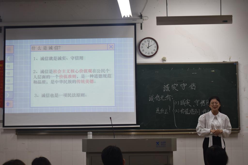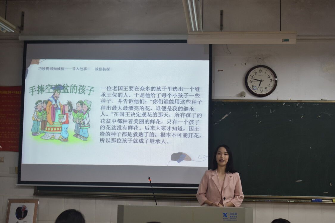 比赛开始前,由主持人向大家介绍此次比赛的评委老师、比赛规则及相关注意事项。接下来,由参赛选手依次进行片段教学展示,展示内容为《道德与法治》八年级上册“诚实守信”。展示过程中,所有选手都结合PPT和板书对课题相关内容进行了生动的讲解,展现出个人的教学风采。全部参赛选手教学展示完毕后,由评委老师认真考评各位选手的现场表现,为参赛选手打出最终得分。最后由工作人员现场统计各位选手得分并评选出比赛的一等奖(4人):于铸琳、廖陈龙、罗钢、舒孝美,二等奖(6人):郑瑶、李浩、赵芸凰、张爱羚、洪瑶、瞿雪梅,三等奖(9人):王婷、翁立辉、袁璐、吕蔚彧、姚梦、郑亚洲、朱倬怡、何宛瑾、张鑫颍。