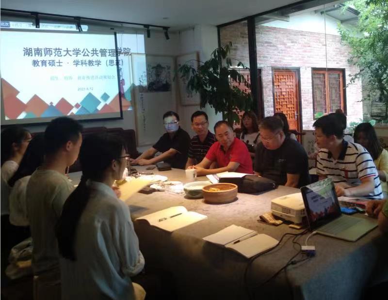 为推进公共管理学院学科教学(思政)专业招生、培养、就业一体化建设和发展。6月12日下午,学科教学(思政)硕士点负责人彭继红教授组织开展了此次会议,学院院长毛新志、副院长李超民、博士生导师宁国良教授、硕士生导师方俊老师、吴根深老师、谢科明老师、朱小明老师、孙亮中老师、严伯霓教授等老师,以及学科思政班同学参加会议。