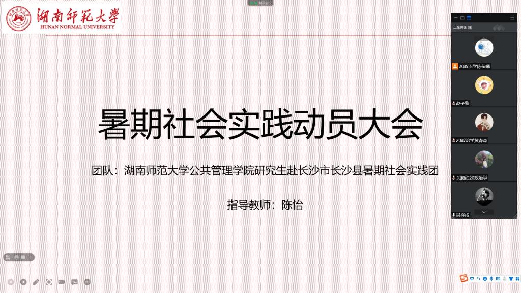 最后,实践队队长陈莹曦对暑期实践队工作进行具体安排,要求全体成员认真填写湖南师范大学2021年研究生暑期社会实践团队队员个人责任书,并就疫情防控等方面存在的安全问题提出了具体的防范措施。