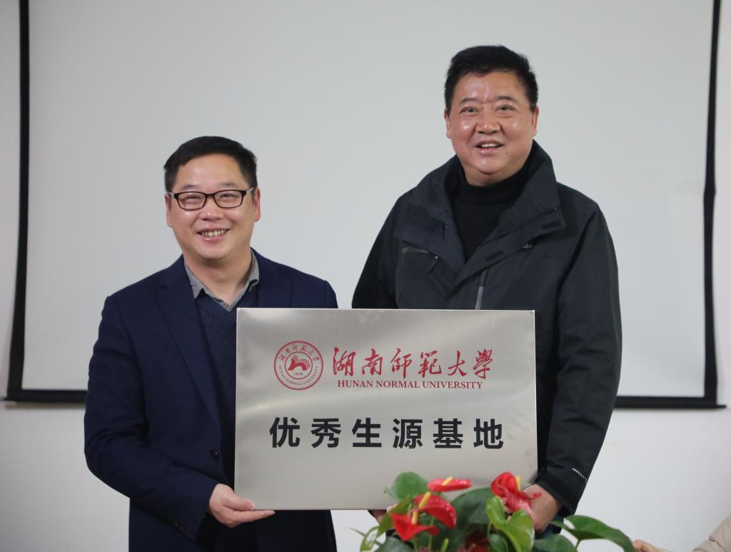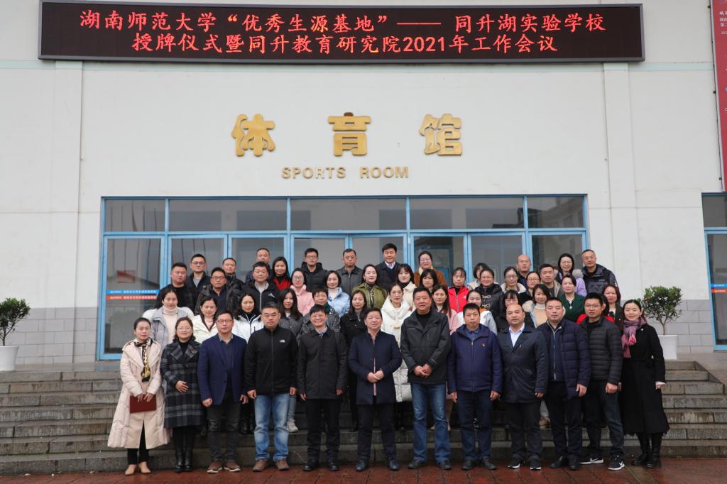 3月5日,湖南师范大学“优秀生源基地”——同升湖实验学校授牌仪式暨同升教育研究院2021年工作会议在同升湖实验学校隆重举行。我校招生就业处处长宋叔培、公共管理学院院长毛新志教授、招生就业处副处长田野、公共管理学院副院长李超民教授、招生就业处招生科副科长唐军、同升湖实验学校校长孙培文为管理核心的团队及同升教育研究院院务会、理事会成员、40名首批研究员出席会议。