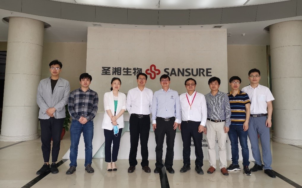5月22日,公共管理学院毛新志院长、道德文化研究院文贤庆副院长一行到圣湘生物科技股份有限公司考察调研。圣湘生物研发部胡漫主任和刘让蛟博士带领调研团队参观公司发展历程展览,并讲解公司发展理念和战略规划,特别介绍了公司在今年新冠肺炎疫情防控工作中快速研发出精准、快速、简便、高通量的新型冠状病毒核酸检测试剂盒的事迹。目前,该公司生产的新冠病毒核酸检测产品先后获得国家药监局注册证、欧盟CE认证、美国FDA紧急使用授权,已服务于全国30多个省份及全球100多个国家疫情防控一线,并助力各类单位复工复产。