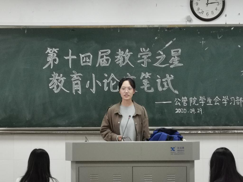 (通讯员 曾嘉瑜 杨尚文 杜鹃)2020年9月29日至30日,湖南师范大学公共管理学院“第十四届教学之星”暨“未来教育家”初赛在景德楼举行。此次比赛由公共管理学院教务办、学工办主办、学生会学业发展部承办。参加此次比赛的选手主要来自公管院思想政治教育专业、政治学与行政学专业、行政管理专业等。