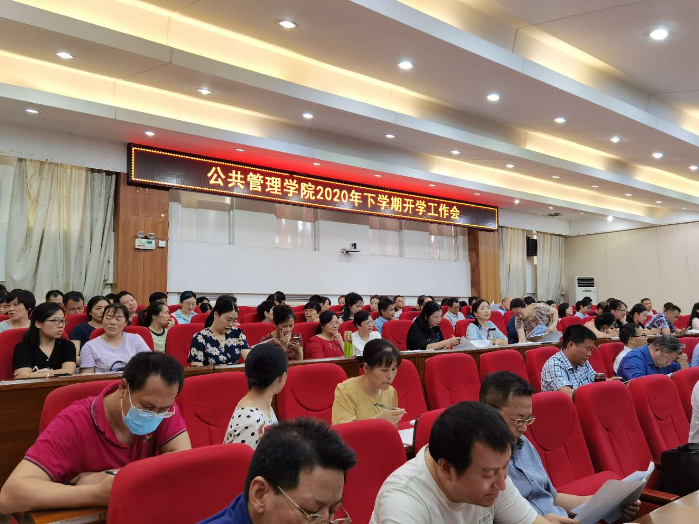 受新冠疫情影响,公共管理学院经过了一学期非同寻常的网上教学后,2020年9月6日在三楼学术报告厅召开了教职工新学期工作大会。大会由党委书记余望成主持。余书记传达了学校新学期工作会议的重要精神,对学院上半年教学和管理以及暑期的学院工作做了总结,同时对新学期的工作做出了部署。毛新志院长在会上作了《构建五位一体的内涵发展模式,全面提高人才培养质量》的工作报告,他从党建、教学、科研、学科、育人等五个方面对学院新学期工作做了详细部署。赵子林副院长、李超民副院长、王敏副院长对本科教学、研究生教育、科研和学科建设分别提出了新目标、新方案。