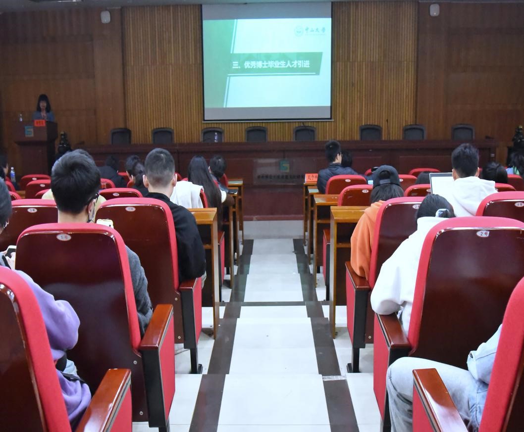 11月1日,中山大学马克思主义学院胡雪莲、张浩教授在我院开展优秀博士生引进和研究生招生宣传工作。副院长李超民主持宣讲会。学院副院长赵子林教授、肖建平老师出席了此次活动。