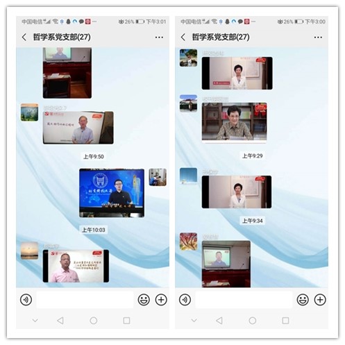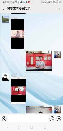 2020年7月1日上午,哲学系党支部全体党员在万丹书记的带领下,观看了《党旗飘扬筑牢红色防火墙——高校党组织战“疫”示范微党课“七一”》专题活动。