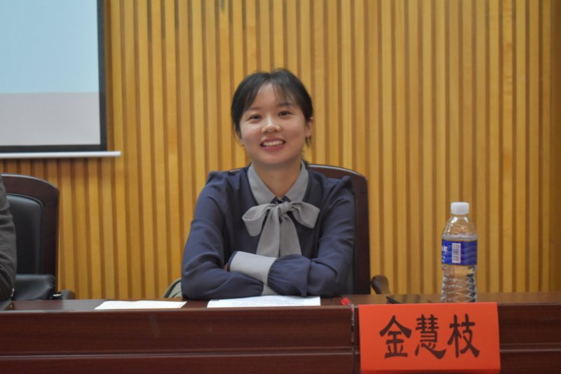 随后,思想政治教育专业2012届毕业生、长沙市长郡双语实验中学教师金慧枝分享了“一名政教师范生的成长路”。她用自己的成长经历回答了“这个专业,好吗?”“大学,怎么过?”“当教师,幸福吗?”等新生普遍关心的问题,勉励学弟学妹们厚实知识储备打好人生底色、珍惜学院平台培养师范技能、注重社会实践提升综合能力。