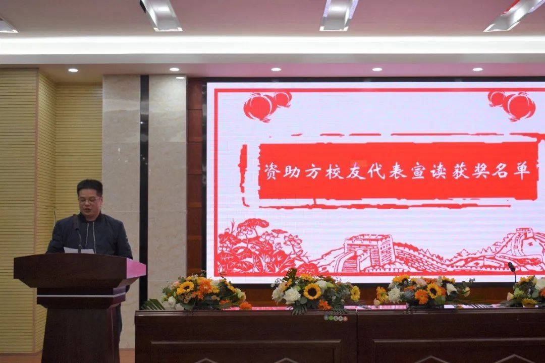 校团委书记龚舒向支持学校教育事业、鼓励学生发展的校友嘉宾表示衷心的感谢和崇高的敬意,勉励团学干部继续努力进步。随后,由与会嘉宾为获奖干部颁发证书和共计五万元的奖金。