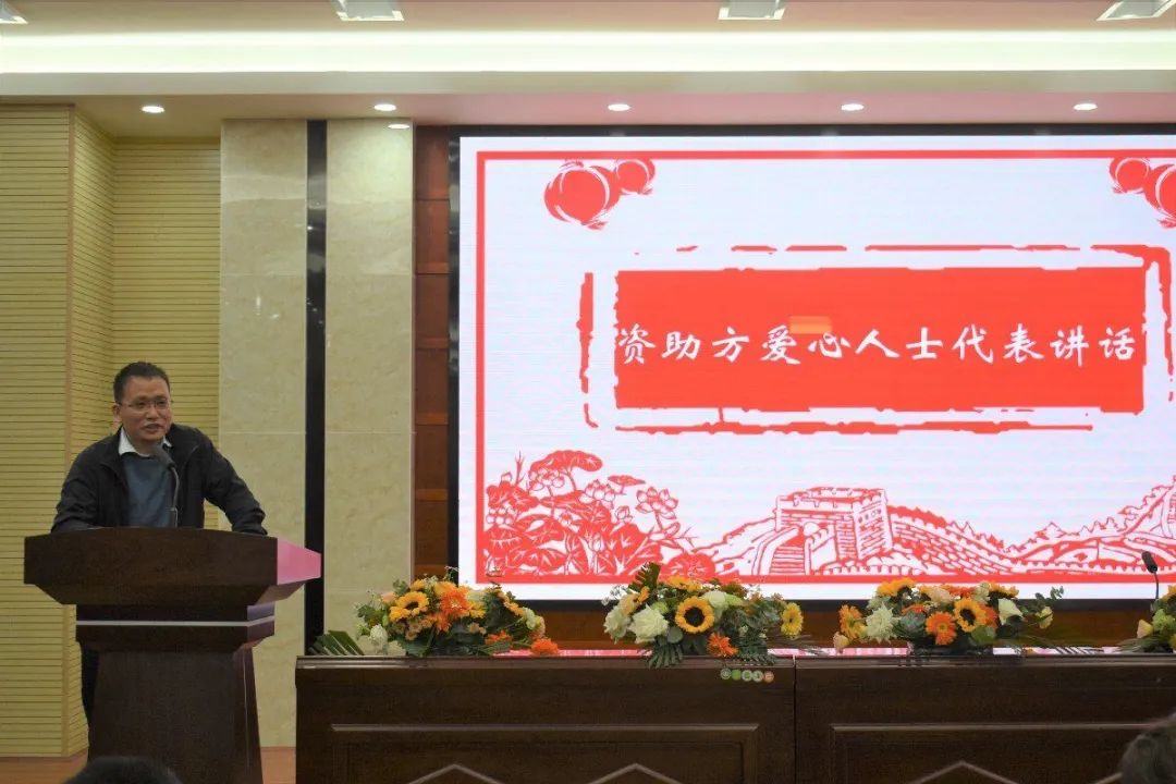 资助方爱心人士朱文丰代表上台发言。