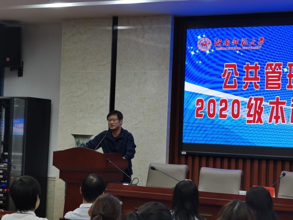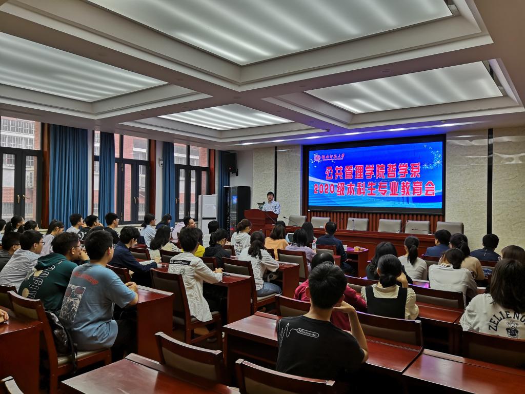 2020年9月29日下午,由公共管理学院学工办与哲学系共同主办的2020级哲学本科生专业教育会,在博后楼303教室隆重举行。公共管理学院院长、哲学拔尖班班导师毛新志教授,哲学1班(经典班)班导师尹哲、哲学2班(拔尖班)班导师邹啸宇,以及哲学系余露、张霖源、刘大为、李波、张含、刘永春、王淑庆、肖根牛、黄泰柯、彭婷等多位老师出席会议,同时2020级哲学1班和2班的48位同学共同参加了专业教育会。该会议由尹哲老师主持。
