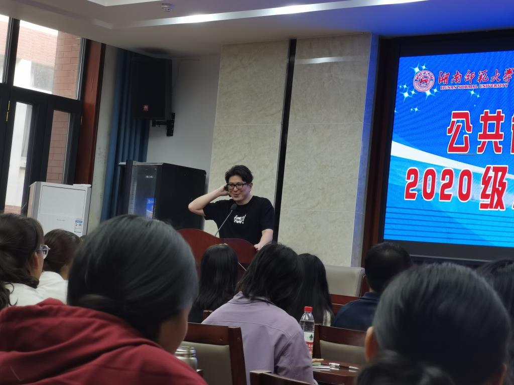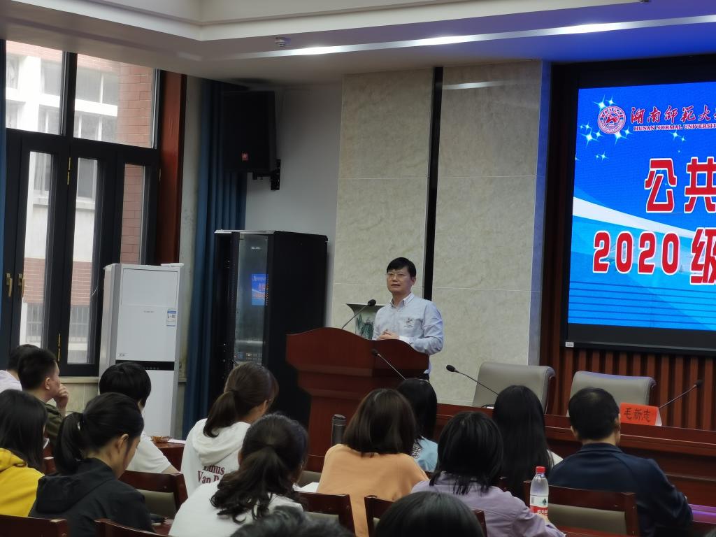 首先,公共管理学院毛新志院长讲话。毛院长对全体哲学本科新生来我院求学表示热烈欢迎;并从哲学学科在当今人文社会科学中的重要性及其美好前景、湖南师范大学哲学系的雄厚师资力量与丰硕教研成果及其良好发展势头等方面,对2020级哲学本科生作了积极引领与重要鼓舞;进而讲述了今年成立景德学堂哲学基础学科拔尖人才基地班的契机与缘由,强调哲学经典班与拔尖班共享学术资源以及二者必当相互砥砺、相互促进;最后对各位新同学提出了不忘初心、始终以德业双修为根本的殷切期望,并表达了对新生们学有所乐、学有所得、学有所成的美好祝愿。