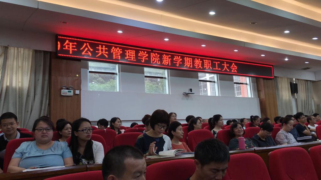 9月1日下午,公共管理学院在学院三楼学术报告厅召开新学期工作会议,学院全体教职工参加会议。