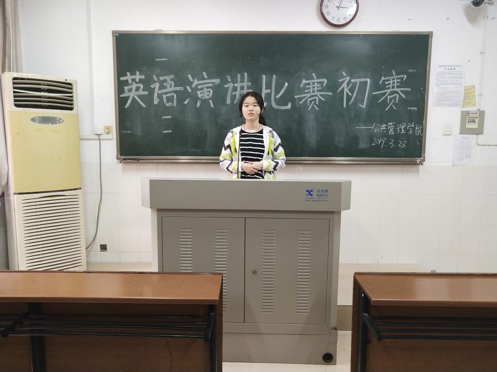 (通讯员 张正梁 佘佳豪)3月28日下午14时50分,湖南师范大学公共管理学院大学生英语演讲比赛初赛在院111教室举行。肖平、董飞、陈怡三位评委老师出席此次比赛。