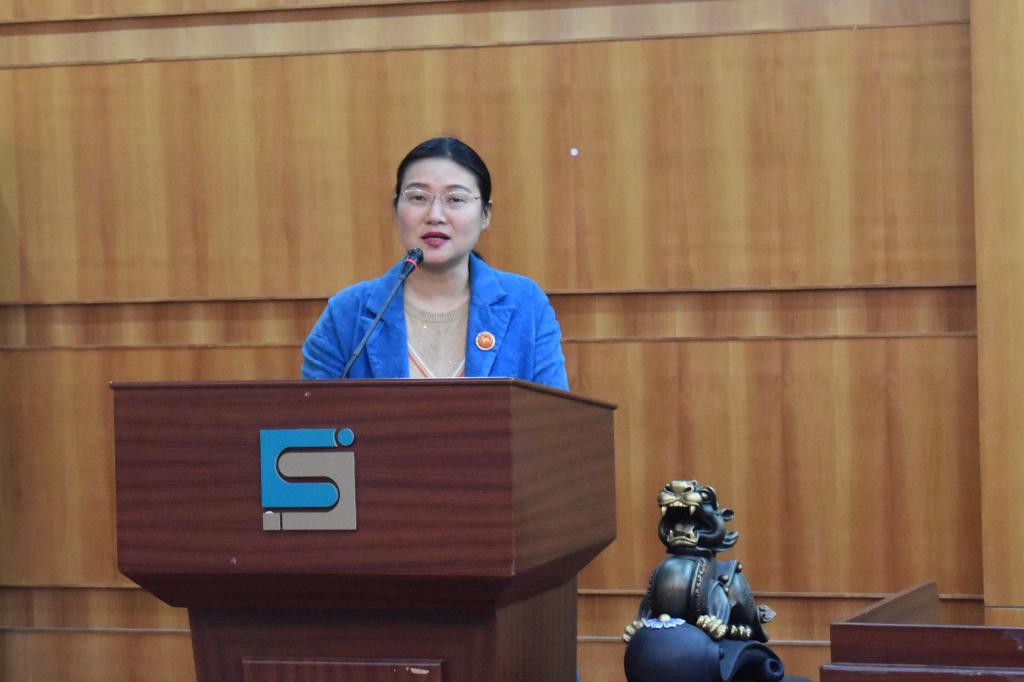 孙雯波上台致辞。她首先向同学们传达了习近平总书记召开的政治理论课教师座谈会的会议精神。重点强调了思政课是立德树人的关键课程,思政老师政治要强、情怀要深、思维要新、视野要广、自律要严、人格要正。她希望同学们能够严于律己,将来做一名合格的思政工作者。她表示,在前四轮激烈的比拼中,她看到了同学们的成长,期待选手们在决赛中有更优秀的表现,并预祝决赛取得圆满成功。