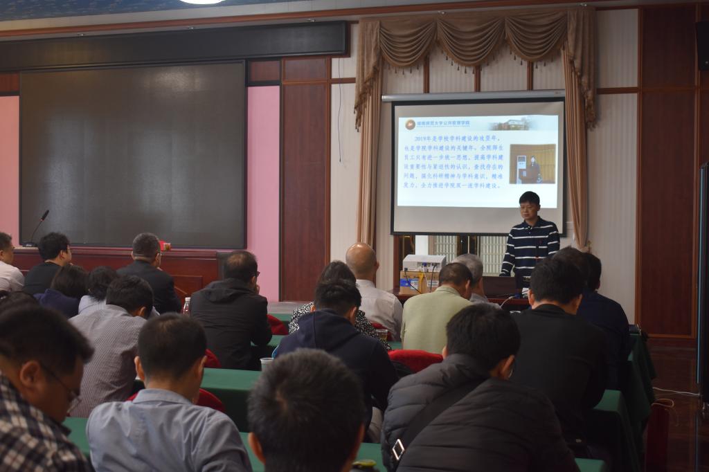 院长毛新志教授作题为《强化科研精神与学科意识,全力推进一流学科建设》的主旨报告,要求全体教职工充分认识一流学科建设的重要性和紧迫性,并从如何加强师资队伍建设、提升人才培养质量、加大科研力度等方面作出了工作部署。