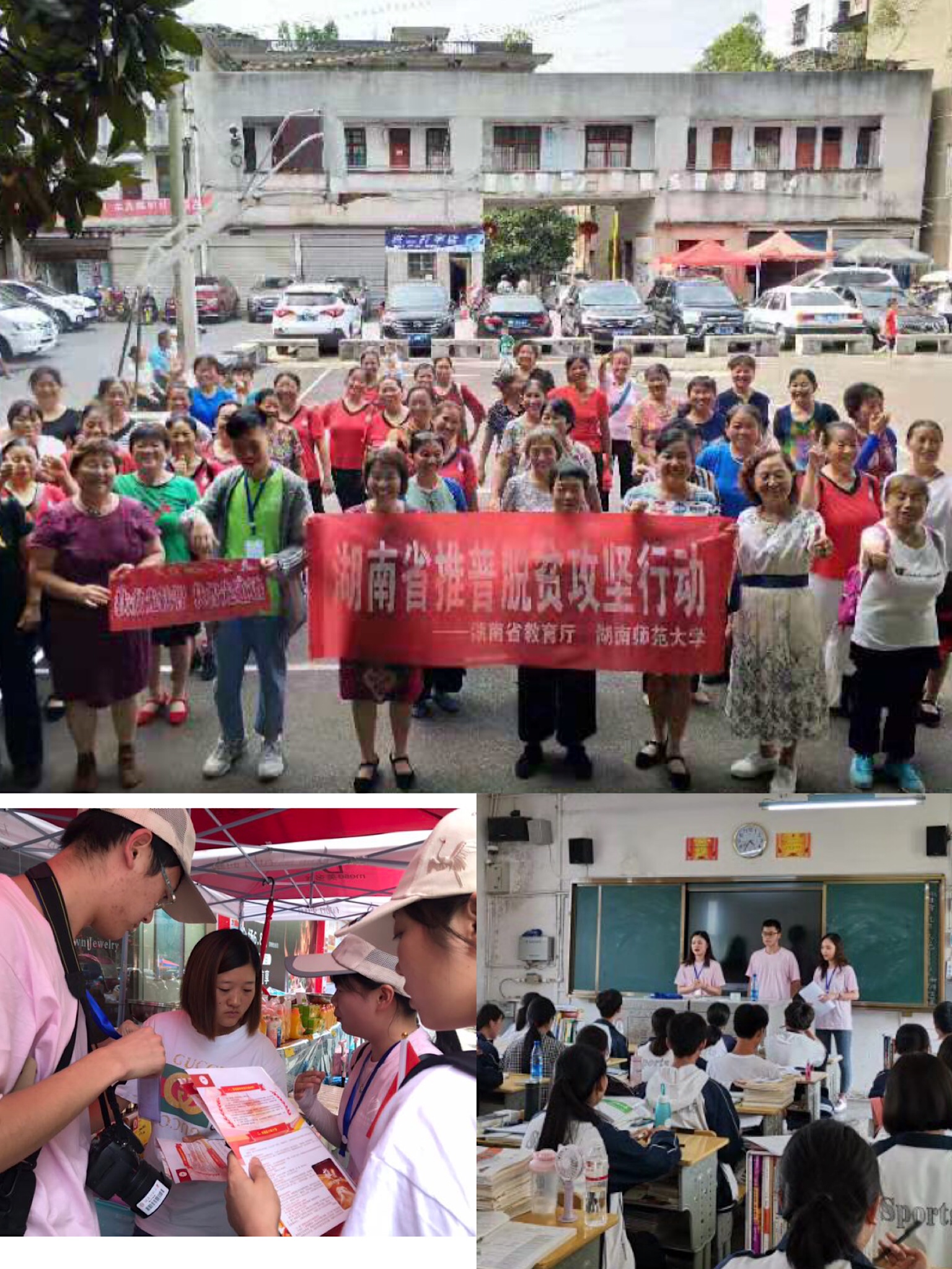 学院26名优秀硕士研究生和本科生组成的推普志愿者团队分成9个小组在五个县的集镇、学校、村户中积极向民众宣传普通话普及推广的好处,宣传讲解国家扶贫政策,并向当地居民发放普通话学习教材,耐心纠正发音,告诉大家通过看电视、听广播都可以开展自学普通话,鼓励他们在日常生活中要敢于开口,努力消除语言障碍,通过讲普通话能方便与外界顺畅交往,全力提升脱贫致富技能。