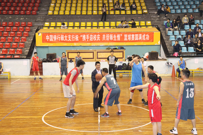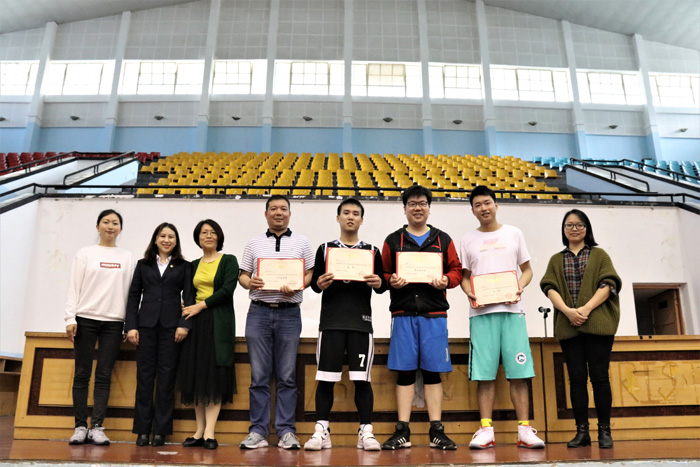 (通讯员徐蒙翔)4月27日下午4点30分,由我院举办、中国银行师大支行赞助的“携手迎校庆、共话师生情”篮球赛闭幕式暨颁奖典礼在校体育馆隆重举行。出席本次闭幕式的嘉宾有公共管理学院工会主席欧顺军、中国银行师大支行副行长蔡爽。
