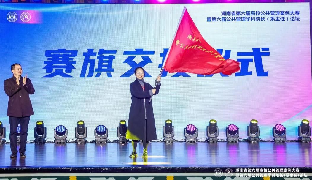 我校刘茜主任以湖南省第七届高校公共管理案例大赛举办方的身份出席了湖南省第六届高校公共管理案例大赛暨第六届公共管理学科院长(系主任)论坛闭幕式,与湖南大学公共管理学院副院长谭海波教授进行了赛旗交接,并向与会代表致邀请词。她表示我校将始终坚守初心,不负众望,确保大赛和论坛的顺利进行,并诚邀各兄弟院校明年在师大再度相聚!