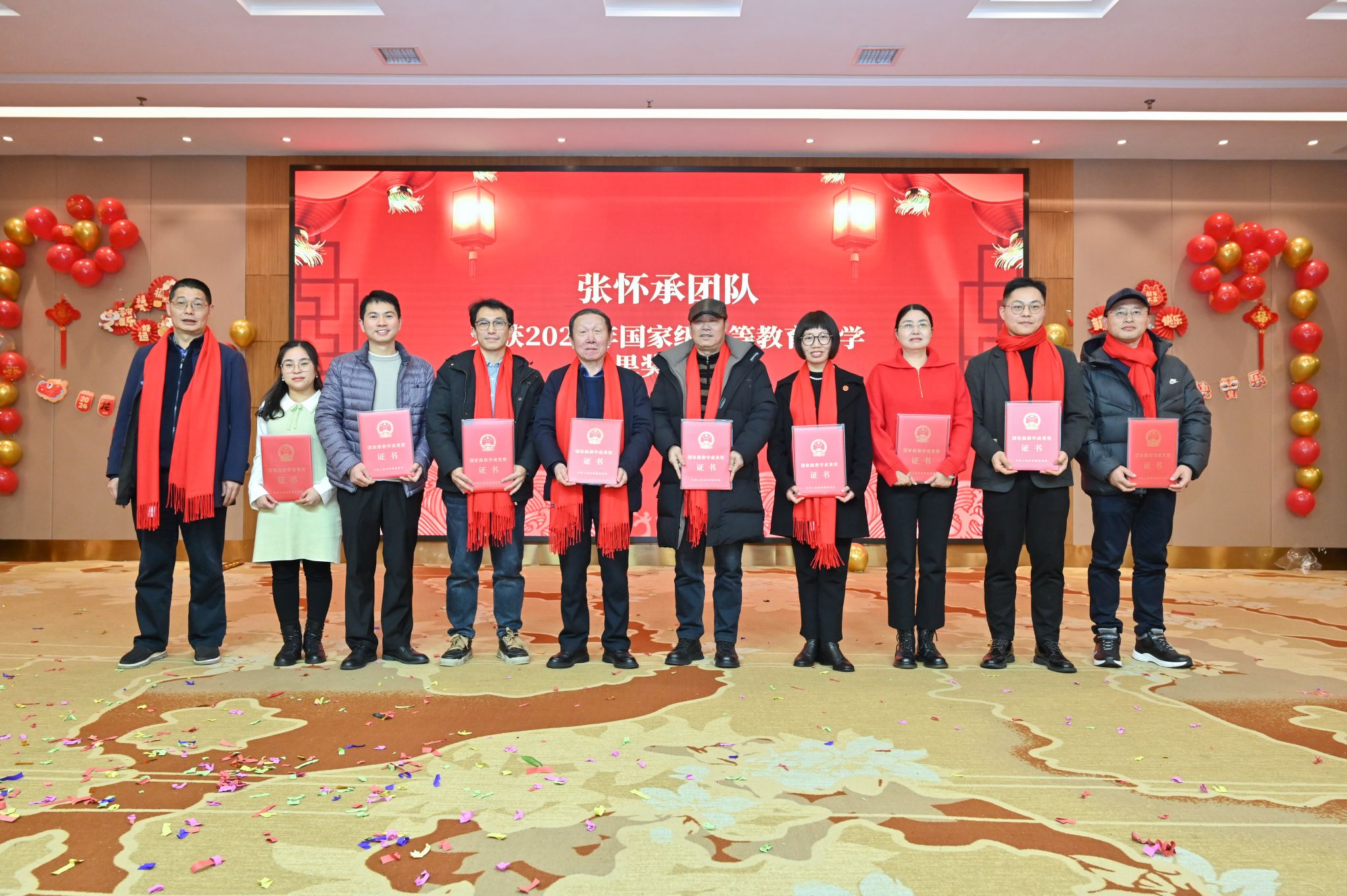 新年联欢会在新进青年教职工带来的布袋舞表演中正式拉开序幕,《爱如火》的欢快节奏,携着表演者对音乐的自我演绎和身姿扭动,场面令人捧腹。肖汉仕、胡建新、戴卫东、陈晓红和邓志伟等退休教职工带来的老歌联唱给大家带来了一场充满激情与感动的音乐盛宴。年已七十五岁的赵景云副书记给大家带来独舞《天边》,可谓是一曲天边心陶醉,苍穹天空鸿雁起,牵引着大家的思绪飞向大草原。行政工会小组带来的改编版合唱《爱你》,将日常工作、以及与学生的互动融入歌词,把师生之间的情意刻画得淋漓尽致,其中展现出来的付出与无悔令人感动。哲学系工会小组带来的诗歌朗诵《沁园春•我爱上班》既有深刻的哲学思辩,又将青椒们的生活日常跃然纸上,诙谐又不失优雅,精准每一位辛勤工作者的生活点滴,迎来台下一大片强烈共鸣。政行学系工会小组带来的《高校时光组曲》激励着大家面对生活中的不如意,怀着对美好未来的向往,咬紧牙关继续奔跑,做到心中有梦想,脚下有力量,力创属于自己的精彩人生。在这追逐梦想的路上,不可或缺的还有爱的力量,我们在生活旅途中相互扶持,共同成长,传递着无尽的爱。社会学工会小组带来的《相亲相爱》将晚会又一次推向高潮。作为压轴重头戏,2023年度本科教学竞赛颁奖表彰在大家的翘首期盼中款然而至。30位老师获得个人奖励,三个教学团队得到表彰。最后,余望成书记率学院领导班子登台,集体给在场的所有教职员工送上新春祝福。