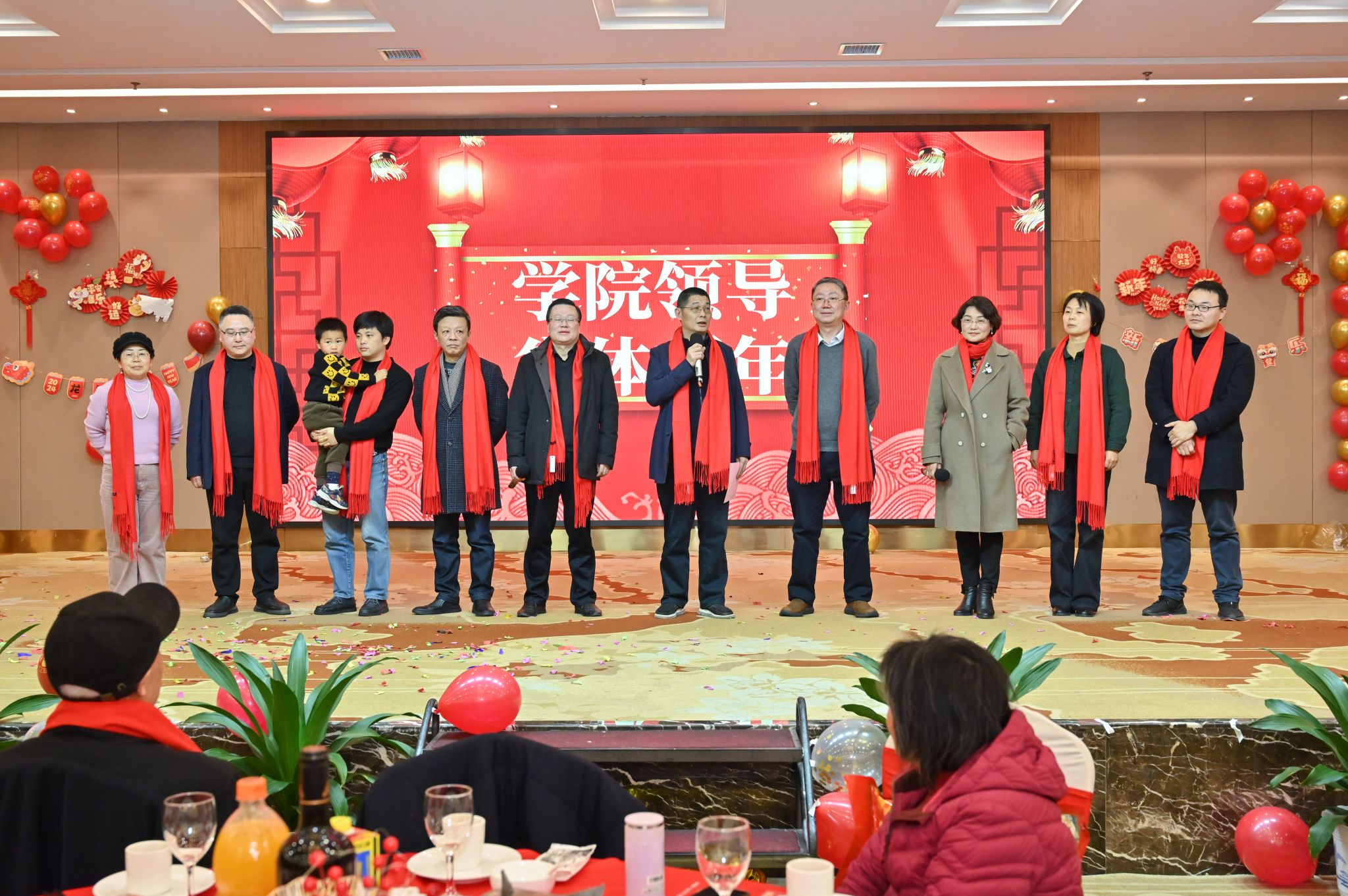 踩着宣传片的余韵,院党委书记余望成致新年贺辞,报告了学院过去一年工作和发展情况,充分肯定了学院全体教职工在教学、科研、管理等方面所取得的成绩,勉励老师们再接再厉,为推动学院新一年事业发展增光添彩,向全体教职员工和离退休老同志致以新年美好祝福。