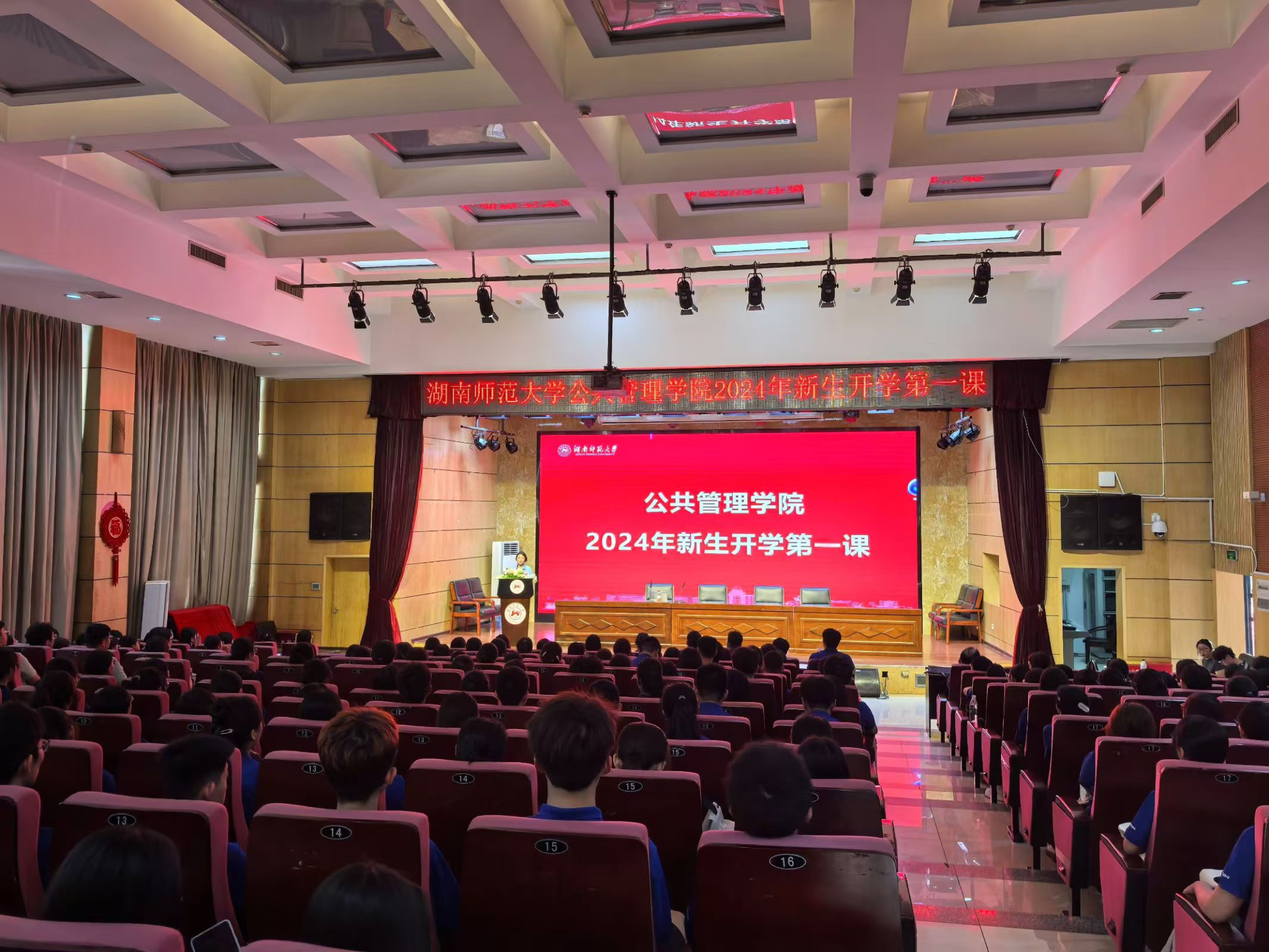 与一所大学相约,和一座城市结缘。为帮助2024级本科新生了解校史校情,了解长沙风情和湖湘文化,9月9日上午,湖南师范大学公共管理学院特邀王泽应教授带来题为“岳麓山文化精神的神蕴和魅力”的新生入学教育第一课。讲座由学院党委副书记孙雯波主持,在桃花坪校区树达楼报告厅举行。