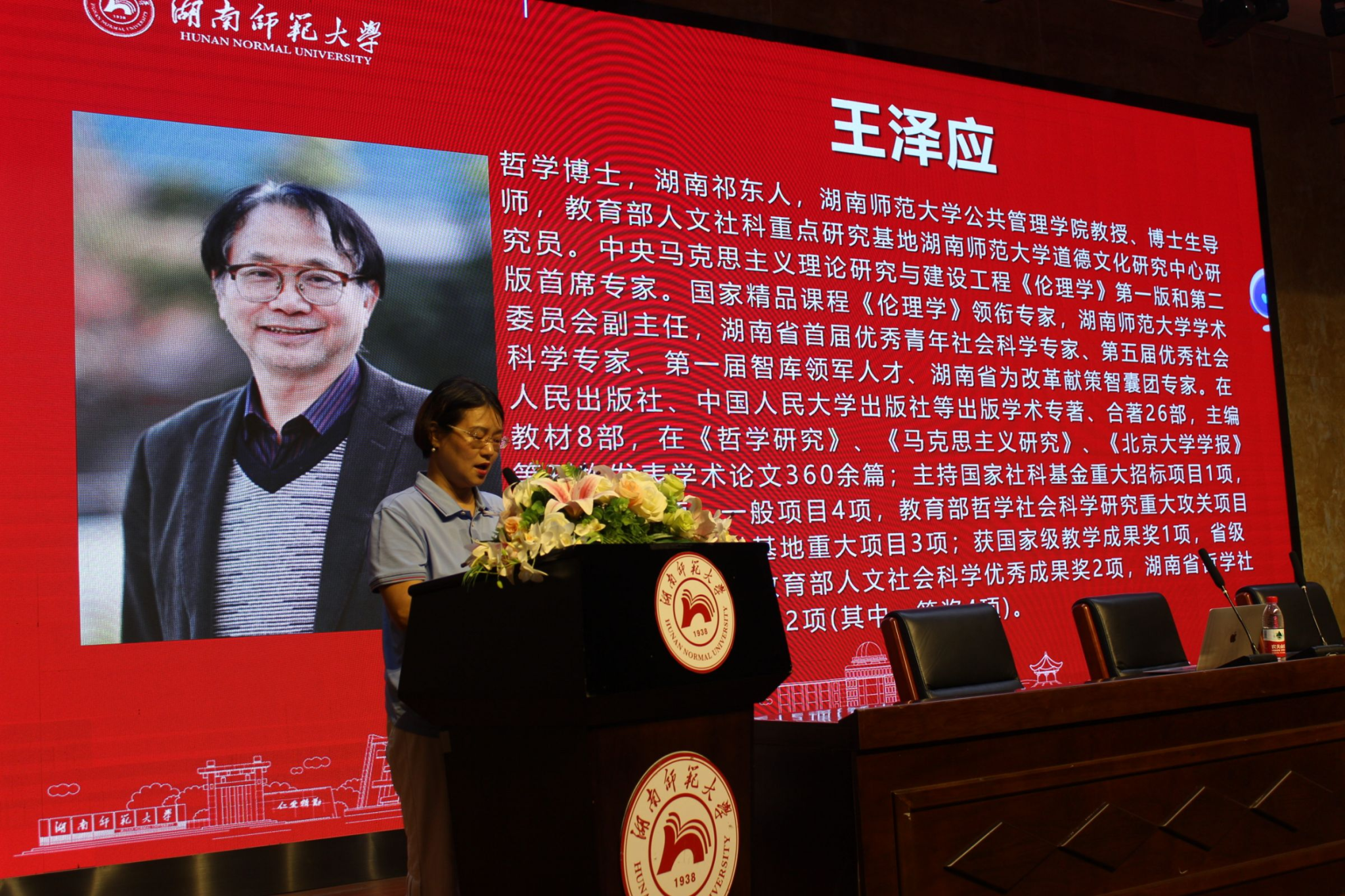 王泽应教授深耕教育事业数十年,是教育部人文社科重点研究基地湖南师范大学道德文化研究中心研究员,中国伦理学会副会长,湖南省优秀社会科学专家获得者。他深研伦理之学,志在立德树人,先后被评为湖南师范大学教学名师、“三全育人”先进个人和湖南省思想政治教育十佳先进个人并记一等功。