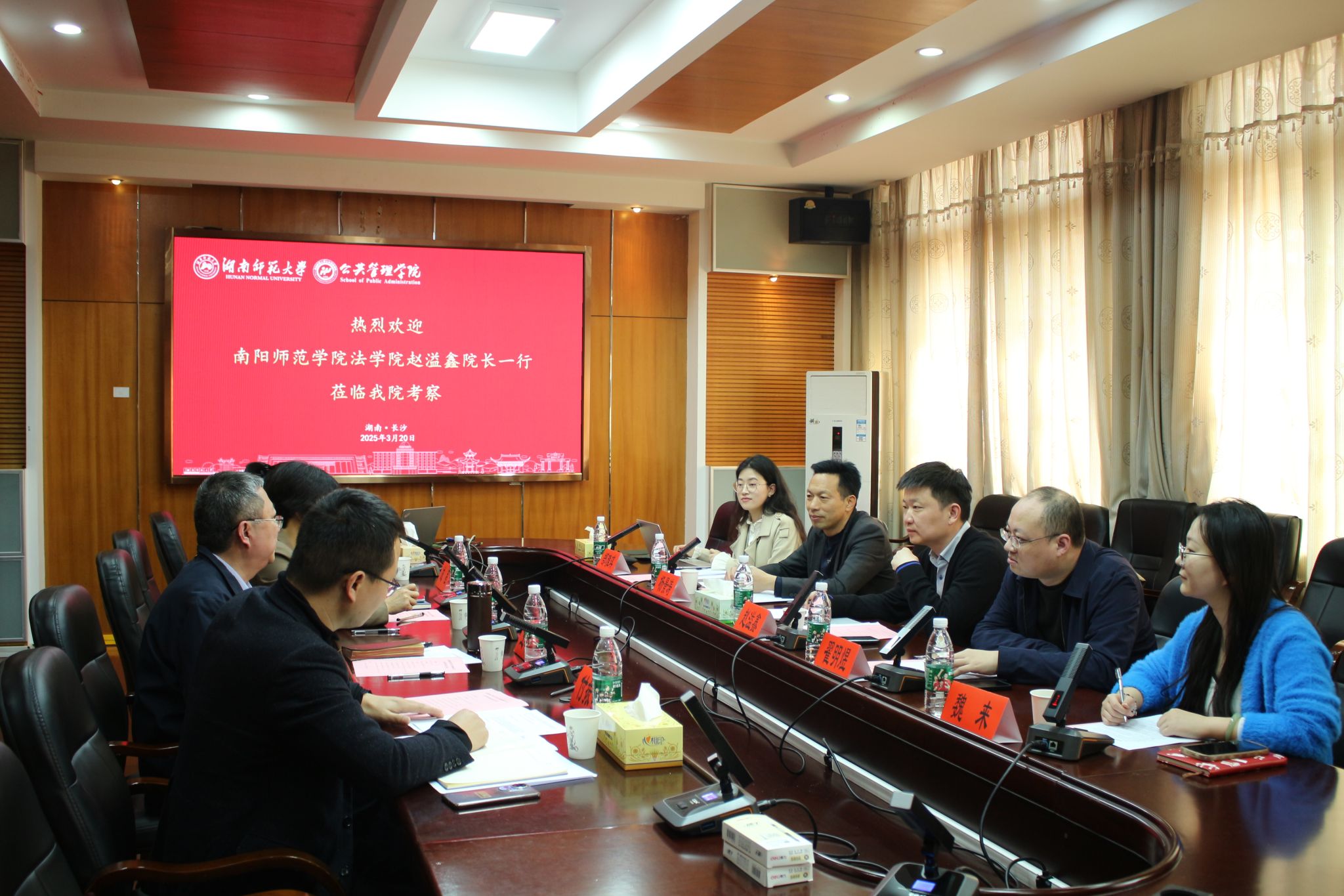 (通讯员 揭梦霜)2024年3月20日下午,南阳师范学院法学院院长赵溢鑫、副院长翟明煜、政治学与行政学系主任杨景涛、教师魏来与郜雅琪等人来访我院。我院副院长王敏教授、副院长苏静教授,政治学与行政管理系主任付振奇副教授、成程博士出席会议,本次会议由政治学与行政管理系主任付振奇副教授主持。
