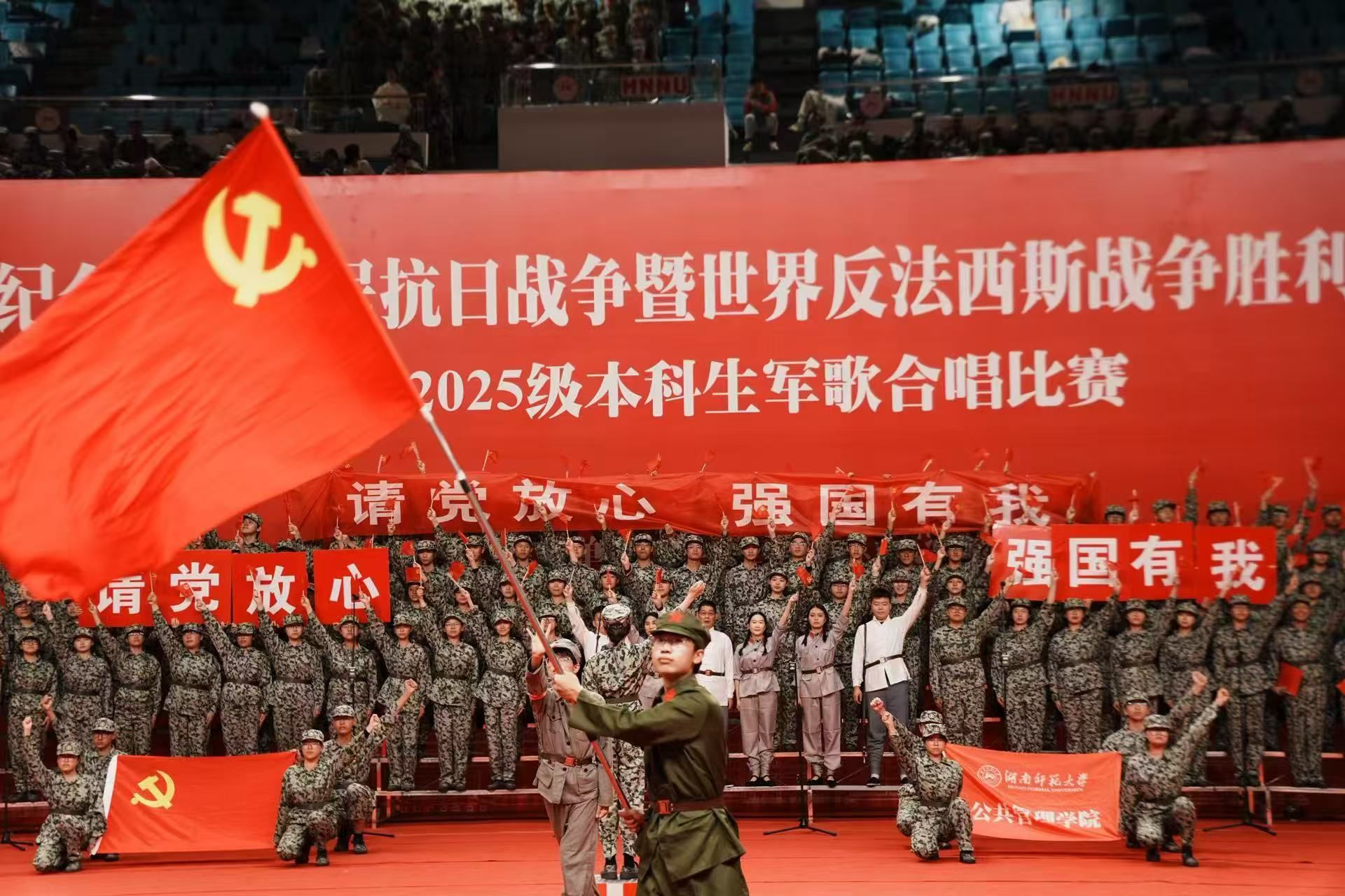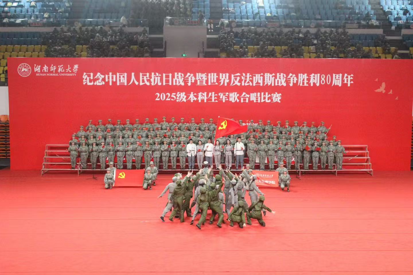 (通讯员 吴祖乐 盛若水 周涵韵)10月18日下午,我校“纪念中国人民抗日战争暨世界反法西斯战争胜利80周年”暨2025级本科生军歌合唱比赛在江湾体育馆隆重举行。本次活动共有22支来自不同学院的队伍参加,覆盖师生3000人次,我院2025级本科生军训合唱团凭借《保卫黄河》的激昂演绎斩获全校一等奖。