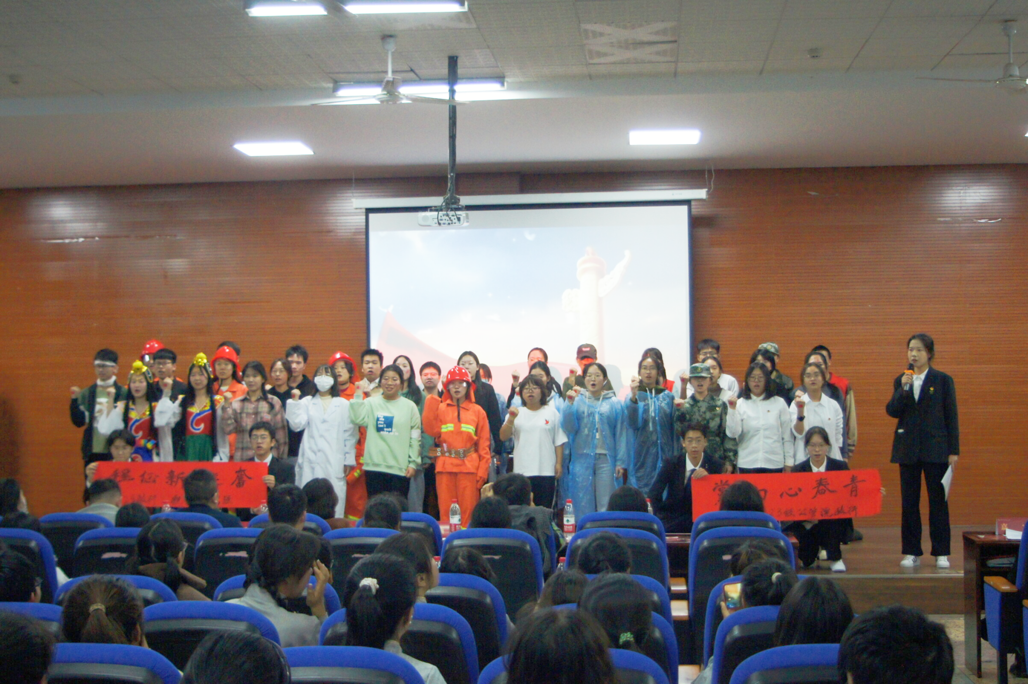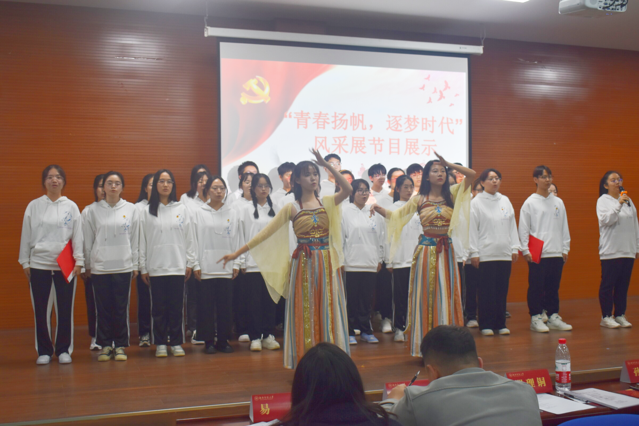 各团支部的演出各具班级特色,体现了团支书的独特构思,展现了青年团员的青春风采与活力。2023级社会学班以朗诵《心中的那抹红色》配合民族舞《映山红》和形式新颖的手势舞《如愿》,充分展示了社会学班“躬身社会、 笃行致远”的班级理念。2023级哲学班带来小品《长夜将尽,星耀征程》和合唱歌曲《我们的明天》,用与历史同频共振的红色故事和轻快明亮的歌声彰显哲学班学子的青春活力。2023级政治学与行政学班通过话剧《同舟共济,大美华夏》中四川凉山火灾、青海玛多地震、河南洪灾的三个场景演绎,表达了“只愿山河无恙,人民无忧,岁月静好,祖国富强”的美好祝愿。2023级行政管理班以“青春扬帆,筑梦时代”为口号,从合唱《错位时空》、国风舞舞蹈、《中国少年说》朗诵三个方面带来风采展示,展现青年学子朝气蓬勃的面孔,笃行好学的品格。