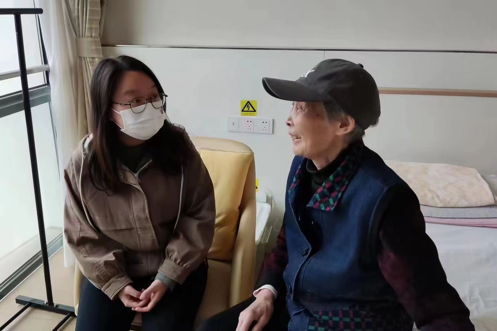 志愿者和老人进行交流