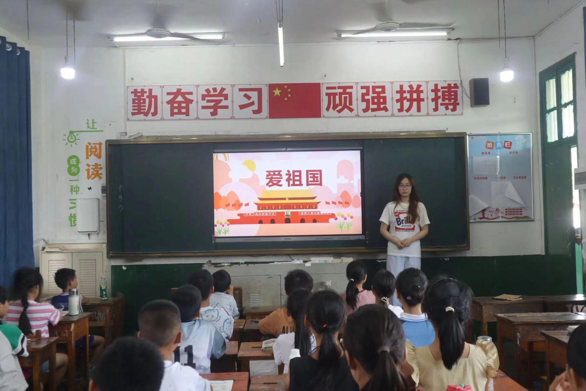 7月14日下午,在爱国教育课程上,实践团成员通过讲解长城、长江大桥等名胜古迹,帮助同学们加深对国家的理解。此次课程让同学们认识到国旗、国歌、国徽的深刻含义,懂得了面对国旗、国徽和听到国歌的正确态度与做法,增强了同学们的国家认同感。在此基础上,全班合唱少年先锋队队歌,以激昂的音乐表达爱国之情。