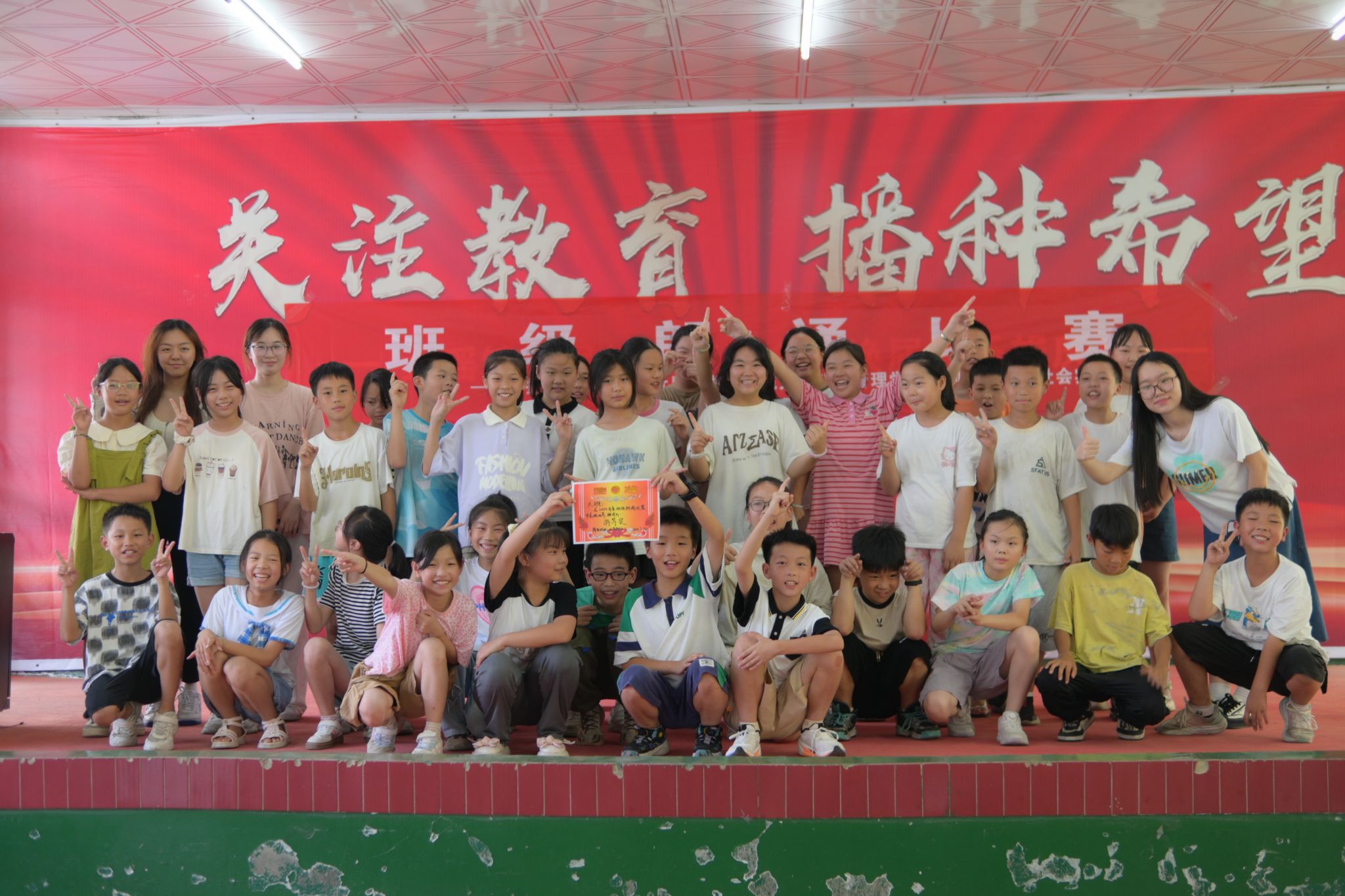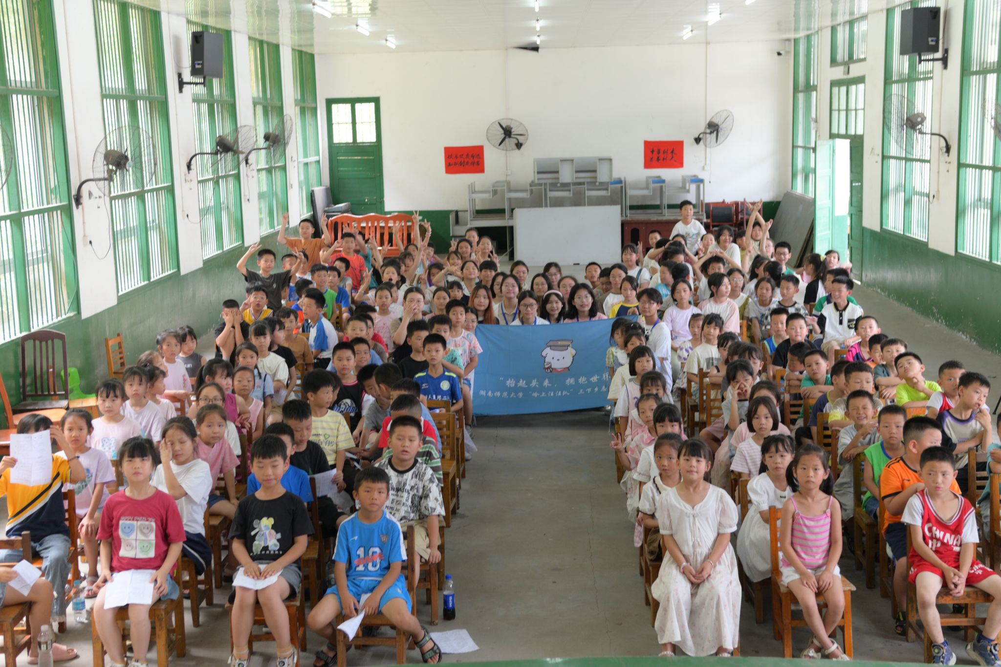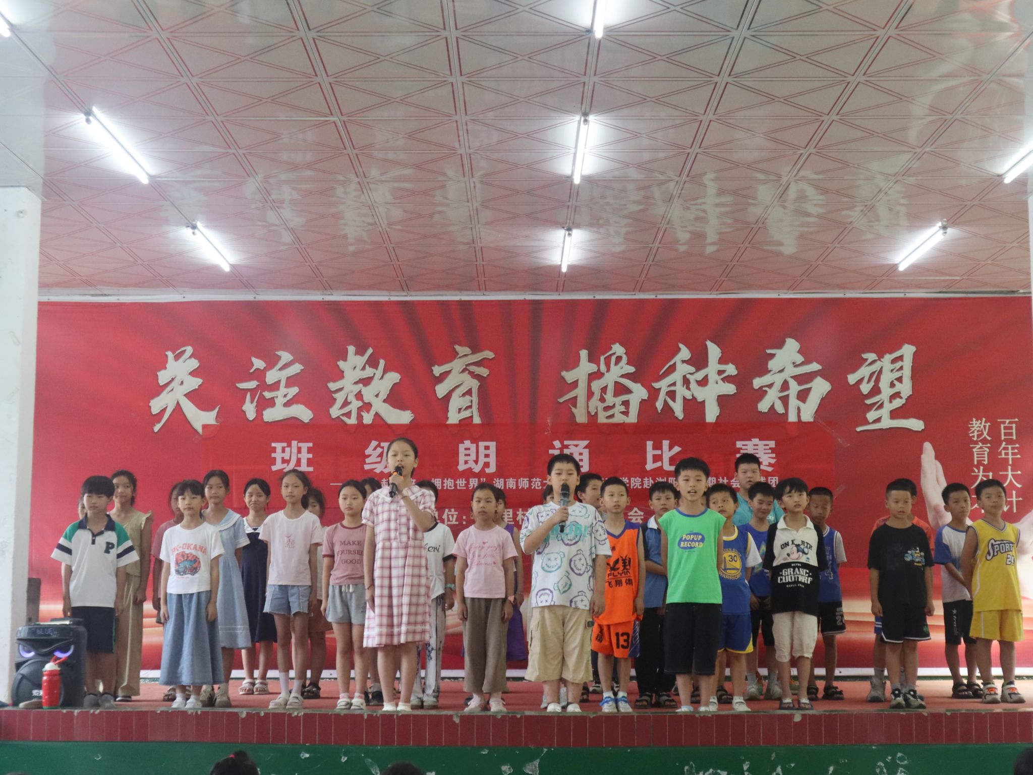 (通讯员:柴玥琪 黄可佳 刘剑)7月20日上午,公共管理学院“抬起头来,拥抱世界”赴浏阳市暑期社会实践团(以下简称“实践团”)在端里完全小学礼堂举办班级朗诵比赛。此次比赛以班级为单位,由实践团成员担任主持人及评委。