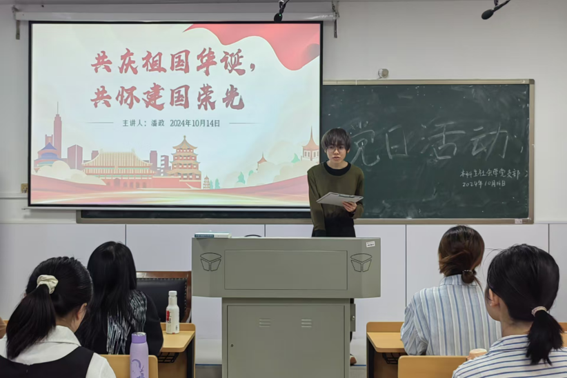 (通讯员:周婕妤 庞思雅 张佳怡)10月14日中午,为共庆祖国华诞,共怀建国荣光,公共管理学院本科生社会学党支部于景德楼112教室开展了10月主题党日活动。