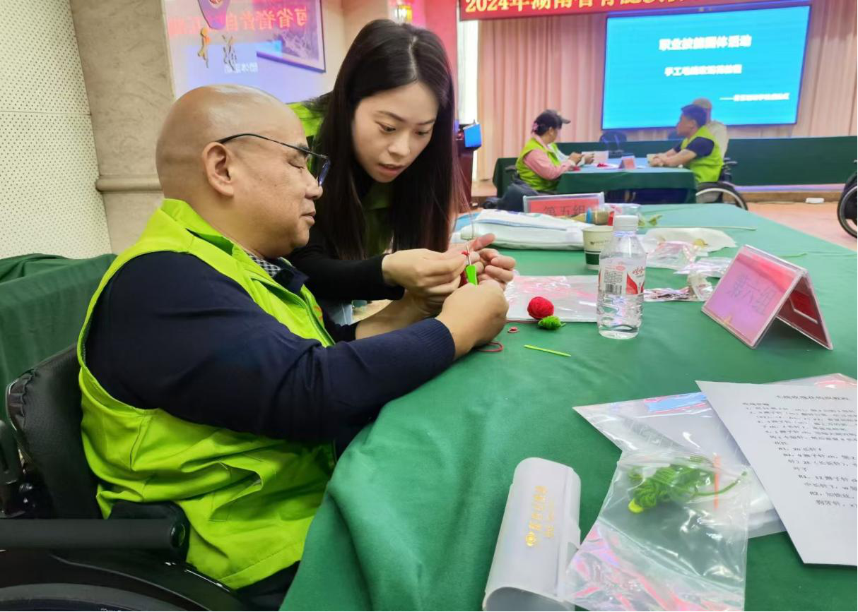 活动前期,团委青工部干事王茜蕊、刘羿男与服务中心工作人员对接工作,协调志愿时间,收集公管院与其他协办学院志愿者信息,并对志愿者进行筛选与培训以保证活动正常进行。活动期间,志愿者一同聆听湖南省著名公益人物肖卓作的经验分享,总结让脊髓损伤者重新融入社会的方法, 提出应对不便的生活技巧。同时,志愿者陪伴他们一同进行肢体功能训练、日常自我护理等课程的实践,体验手工毛线玫瑰花钩织的游戏,这既锻炼了服务对象的动手能力,又拉近了他们与志愿者的距离。机构邀请湘雅博爱康复医院的医生陈丽对服务对象进行生理、生活能力、社会适应、心理适应等四个方面的能力评估,为其制定了生活重建培训方案,帮助他们规划下一阶段生活。活动最后,机构负责人为每位志愿者与服务对象颁发了结业证书并合照留念。